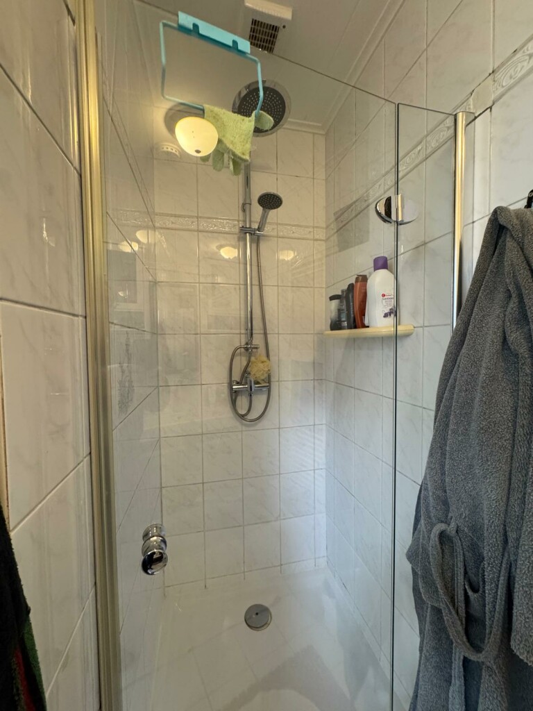 • Badkamer met douche, badmeubel en mechanische ventilatie