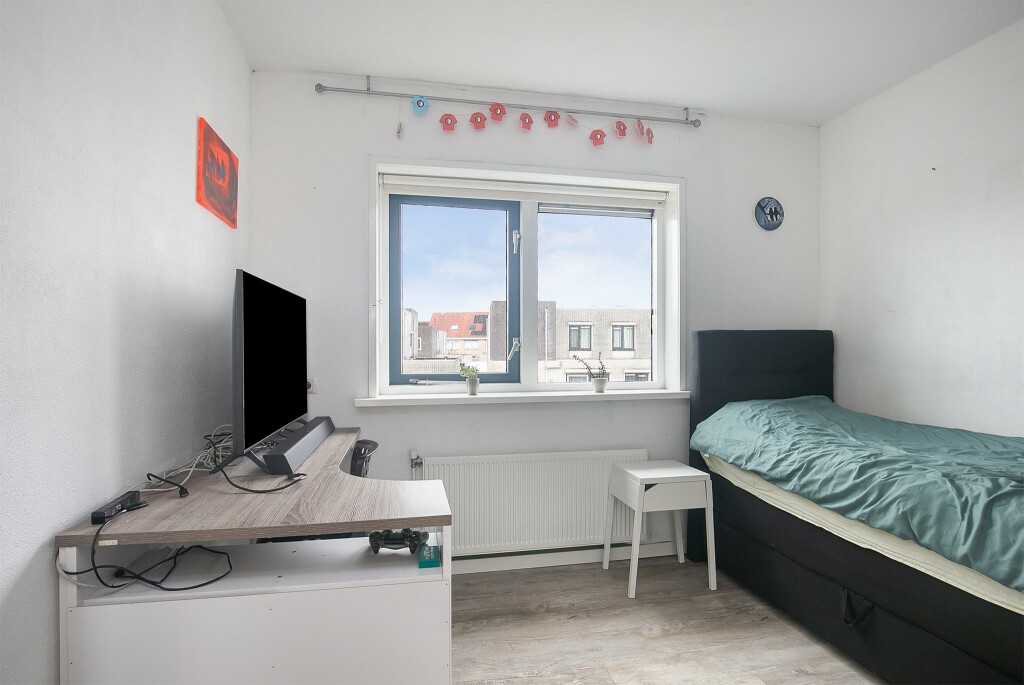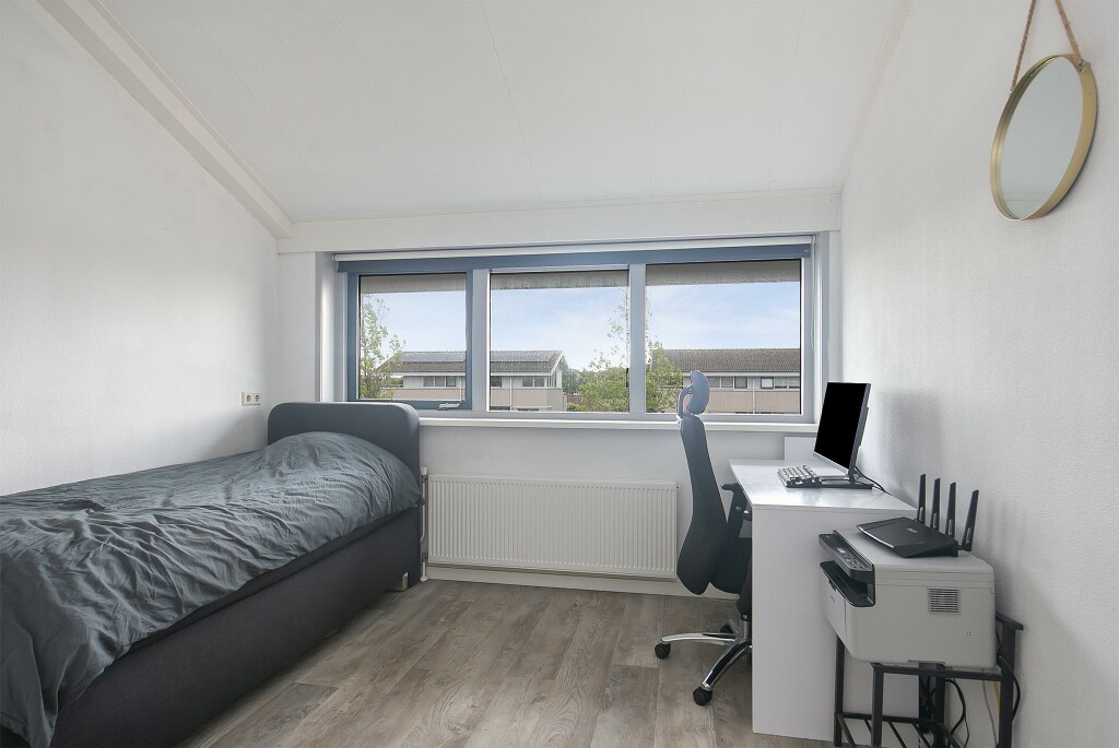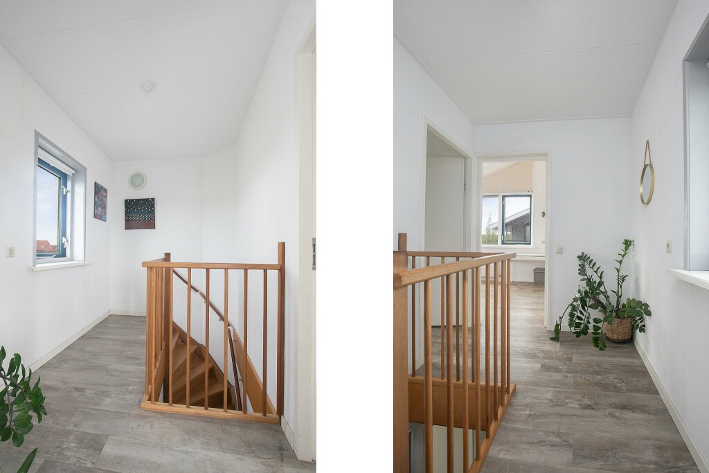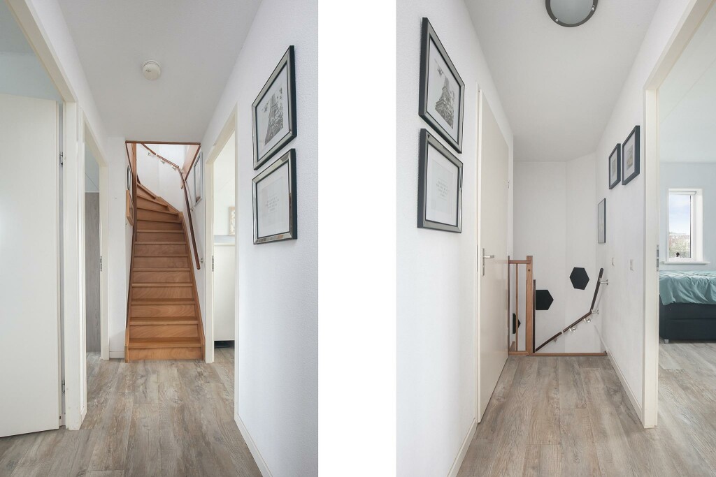 Overloop en 2 slaapkamers met een fantastisch uitzicht over de wijk.