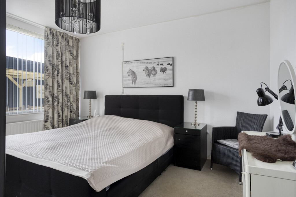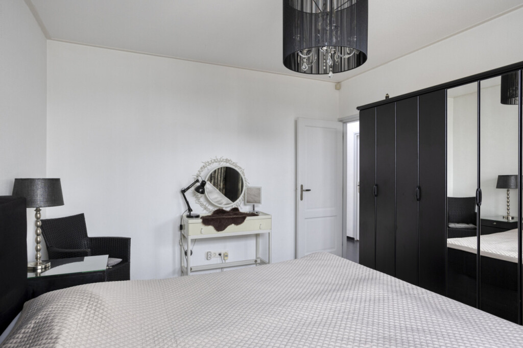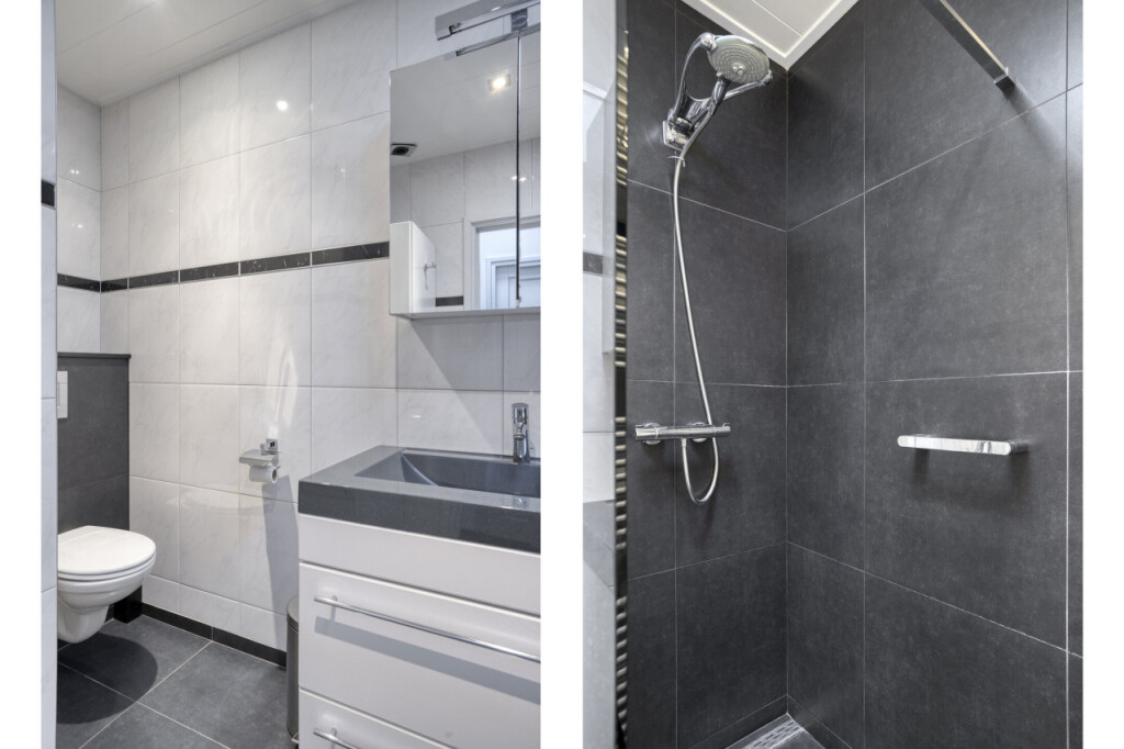 De 3 slaapkamers meten respectievelijk 16m², 10 m² & 9 m². De moderne badkamer is uitgevoerd met ruime inloopdouche, wastafelmeubel met spiegelkast, tweede hangtoilet en badkamerkast.