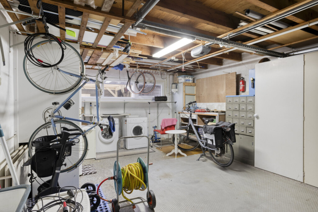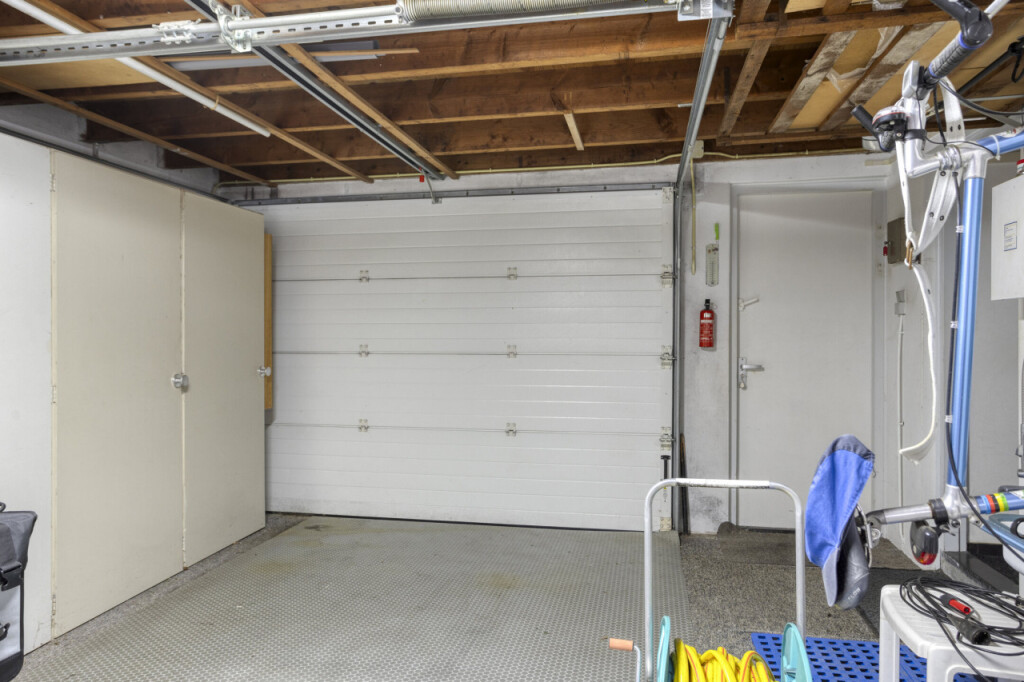 In de ruime geïsoleerde en verwarmde garage (25m²) is de HR-combiketel (Bosch 2009) en de aansluitingen voor het witgoed te vinden. Naast de elektrische garagedeur geeft een loopdeur eveneens toegang tot de oprit waar plaats genoeg is voor het stallen van 2 autoâs.