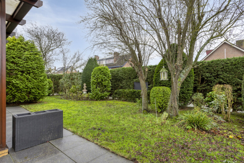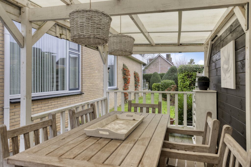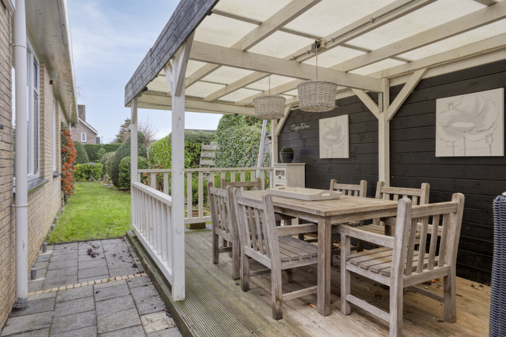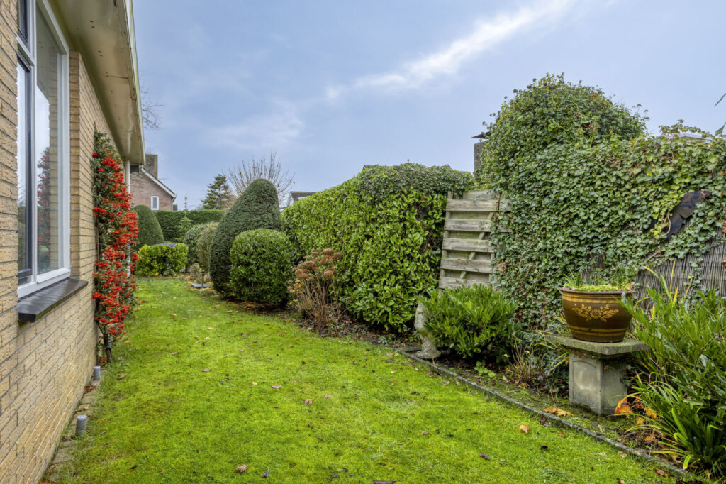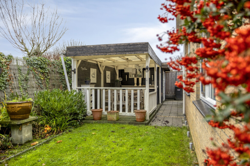 De tuin is rondom de woning gelegen en biedt veel privacy. Aan de noordwest zijde van de woning bevindt zich nog een praktische houten berging met gezellige overkapping waar het heerlijk vertoeven is. De tuin biedt een heerlijk plek om te genieten van de rust en privacy die deze mooie locatie te bieden heeft.