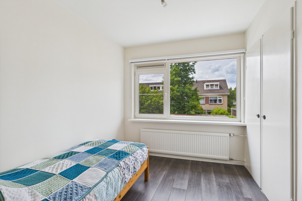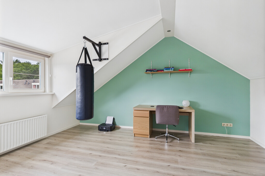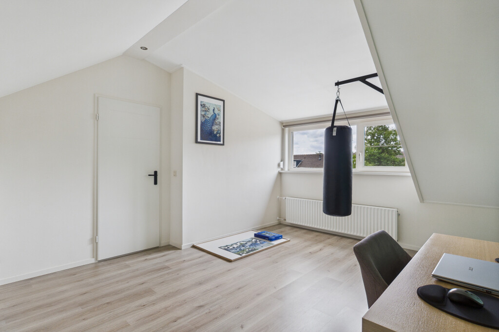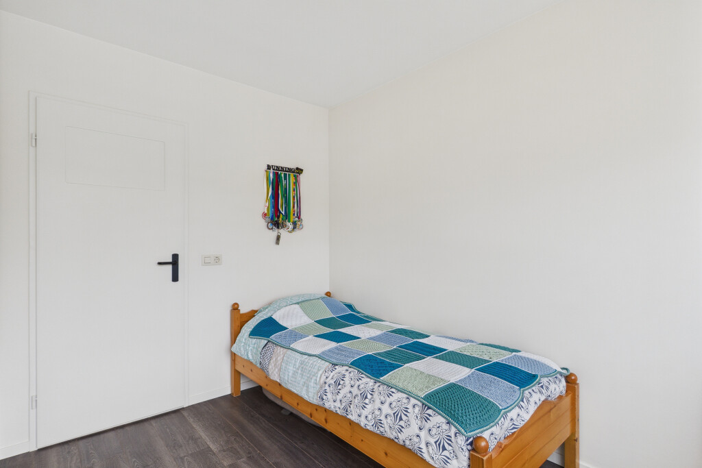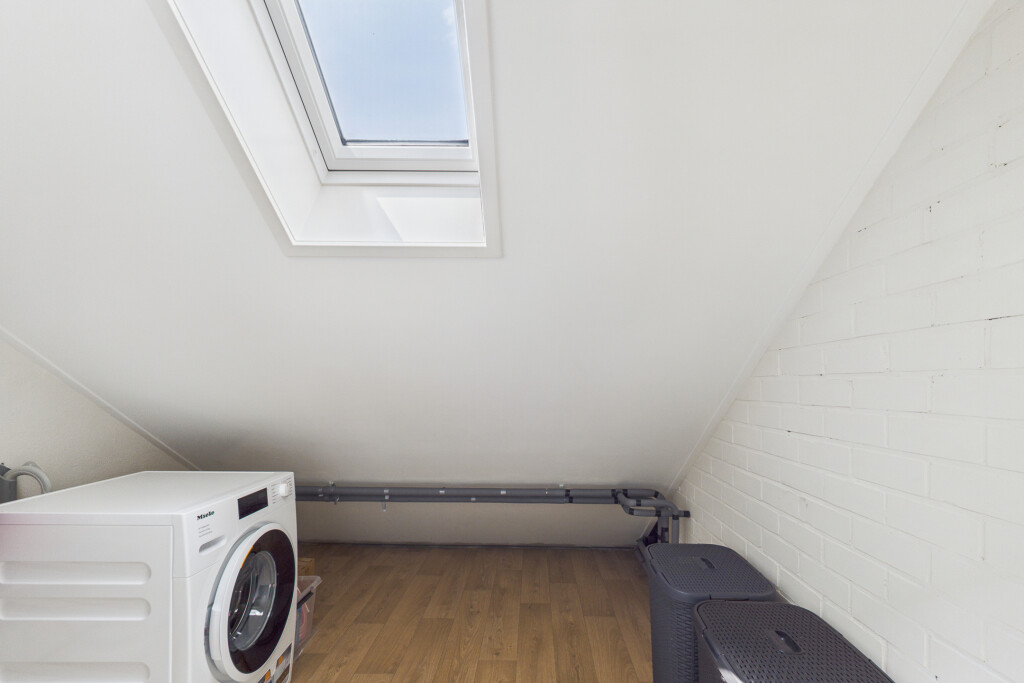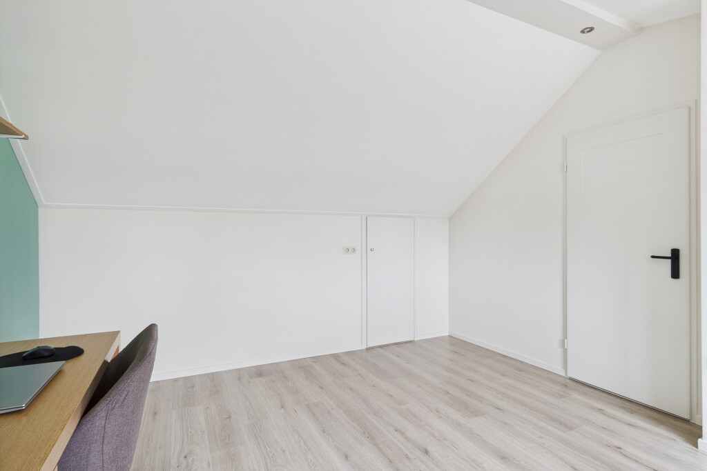 De tweede verdieping verrast met een ruime vierde slaapkamer, die dankzij de dakkapel heerlijk licht en ruimtelijk is. Achter de knieschotten is handige bergruimte gecreëerd en daarnaast vind je hier de cv-ruimte en extra bergruimte op de overloop.