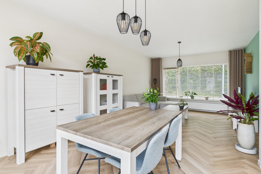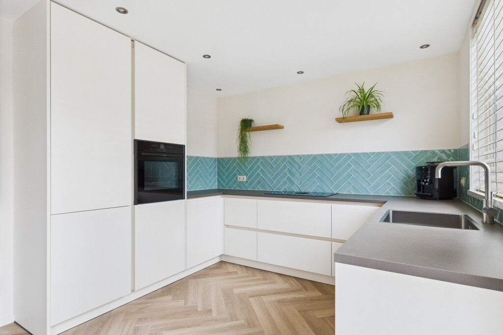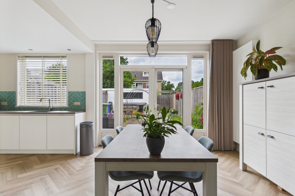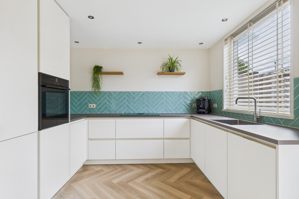 Je komt de woning binnen in de hal met garderobenis, toilet, meterkast en trapopgang naar de verdieping. Vervolgens stap je de ruime doorzonwoonkamer binnen, waar de prachtige visgraatvloer direct in het oog springt. De open keuken, vernieuwd in 2022, is modern en stijlvol en uitgerust met alle denkbare inbouwapparatuur. Via de openslaande tuindeuren loop je zo de achtertuin in, waar je kunt genieten van zon en rust.