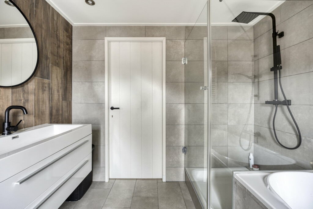 De badkamer is in 2019 vernieuwd, is geheel betegeld en voorzien van douche, ligbad, hangtoilet, wastafel met meubel en designradiator en rolluik.