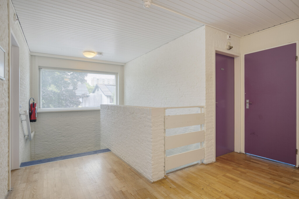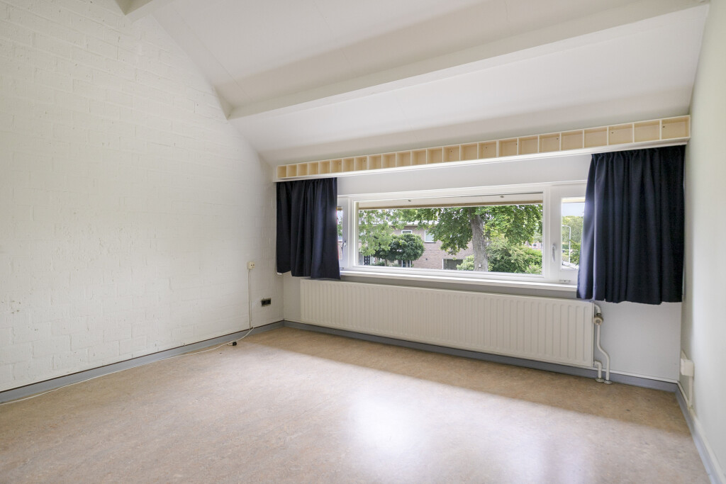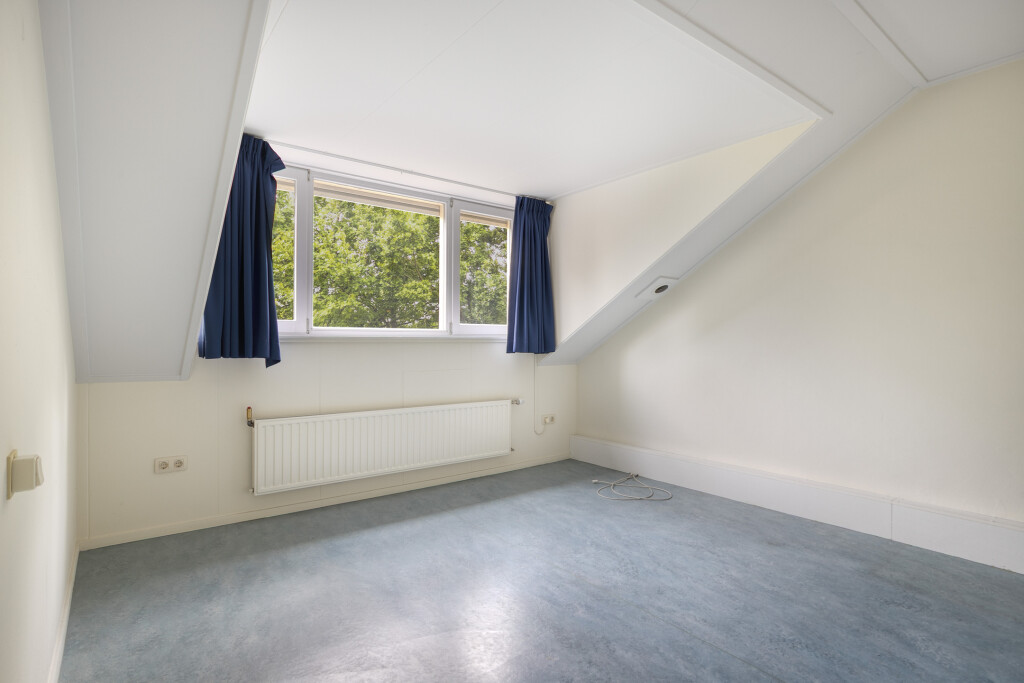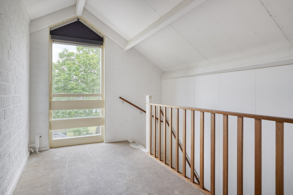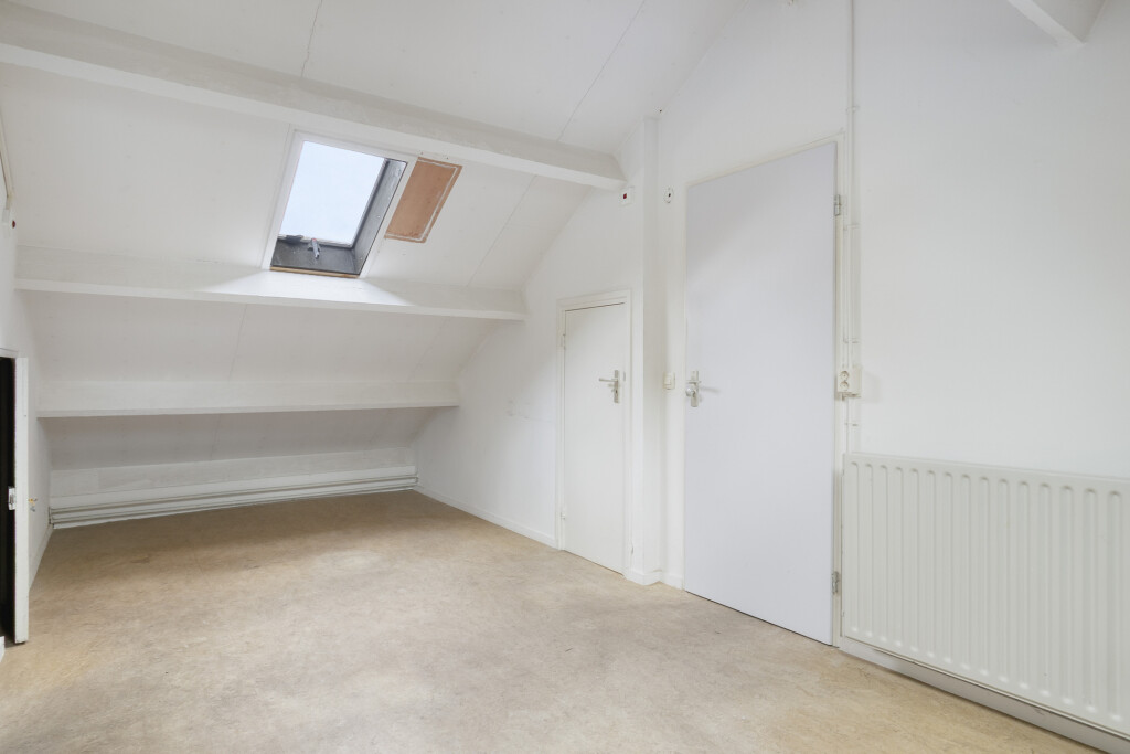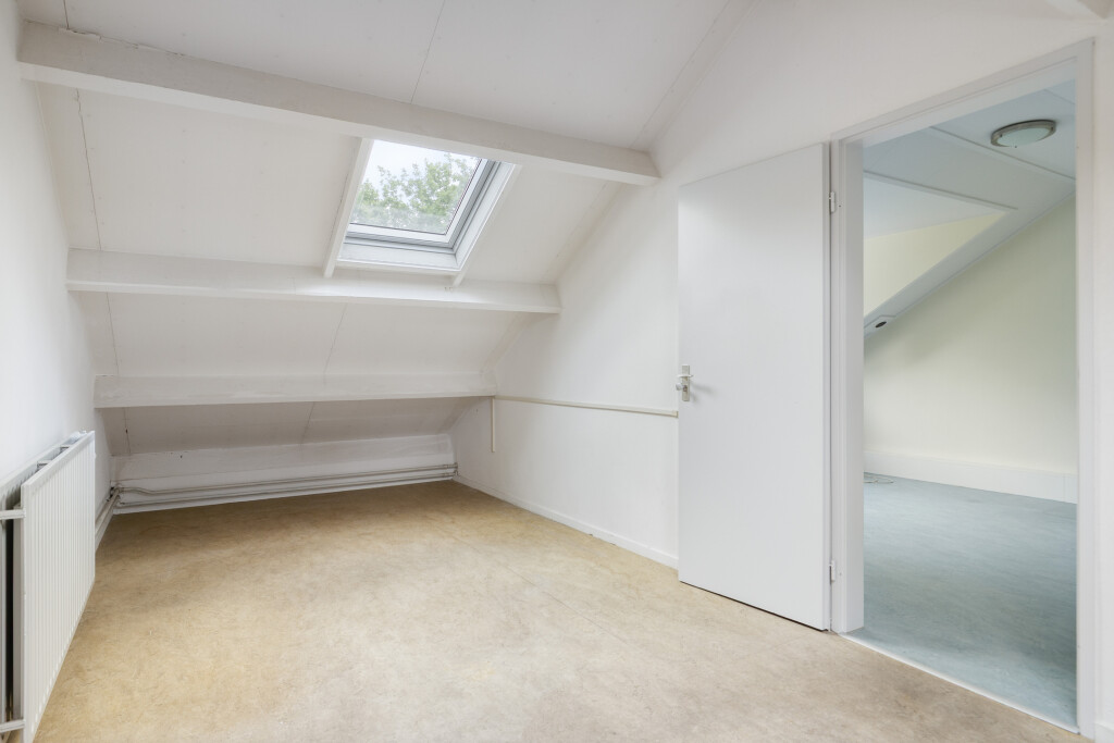 Overloop met aansluitend een tussenkamer die toegang geeft tot twee bergingen, waar in één de Nefit HR-combiketel (2011) is geplaatst, en 7e slaapkamer met dakkapel.