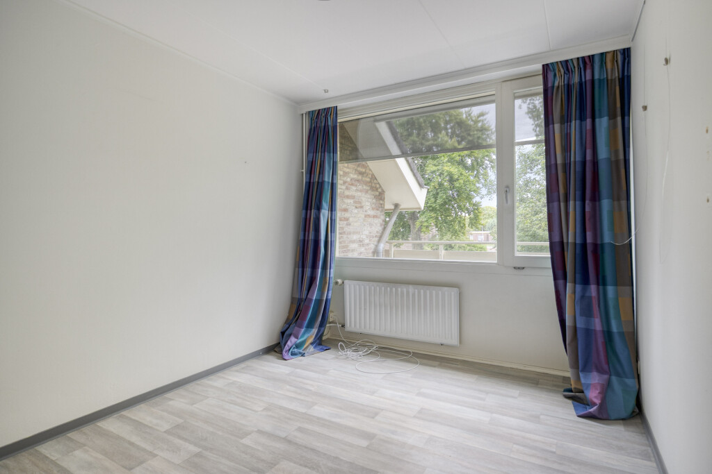 De naastgelegen bijkeuken geeft toegang tot de tweede hal met slaapkamer, badkamer (voorzien van inloopdouche, wastafel en hangtoilet) en kamer/berging met vaste kast. Deze laatste ruimte leent zich perfect om in te richten als dressingroom!