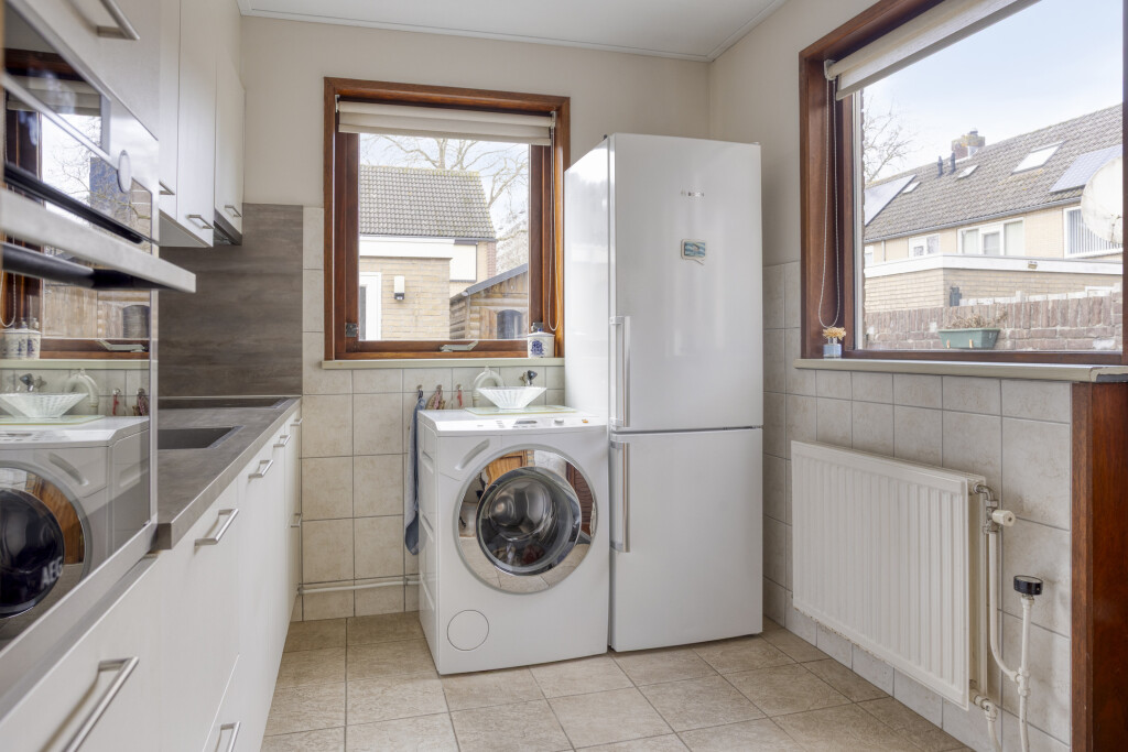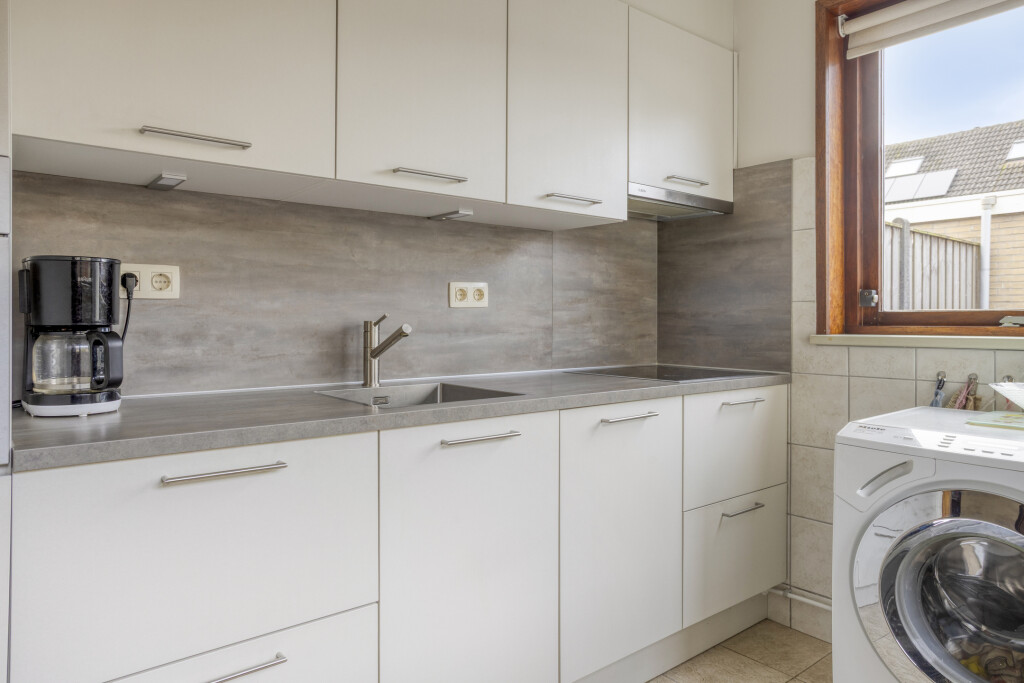 In de keuken is een mogelijkheid om de wasmachine aan te sluiten en via de deur is de achtertuin bereikbaar.