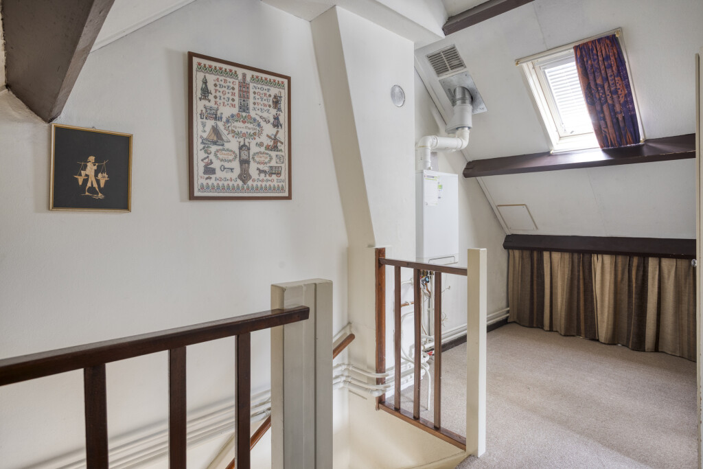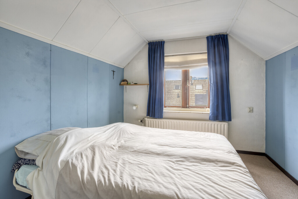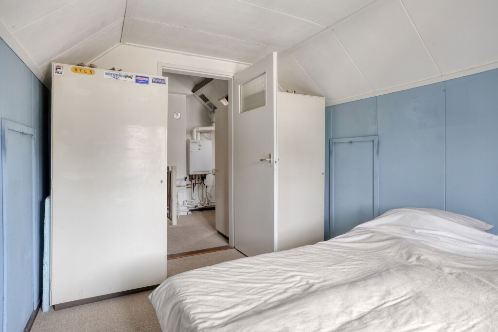 Via een vaste trap is de zolder bereikbaar. Op de overloop hangt de cv-combiketel (2021) en hier is de 4e slaapkamer voorzien van vloerbedekking. Daarnaast is er nog volop ruimte voor het opbergen van niet alledaagse spullen.