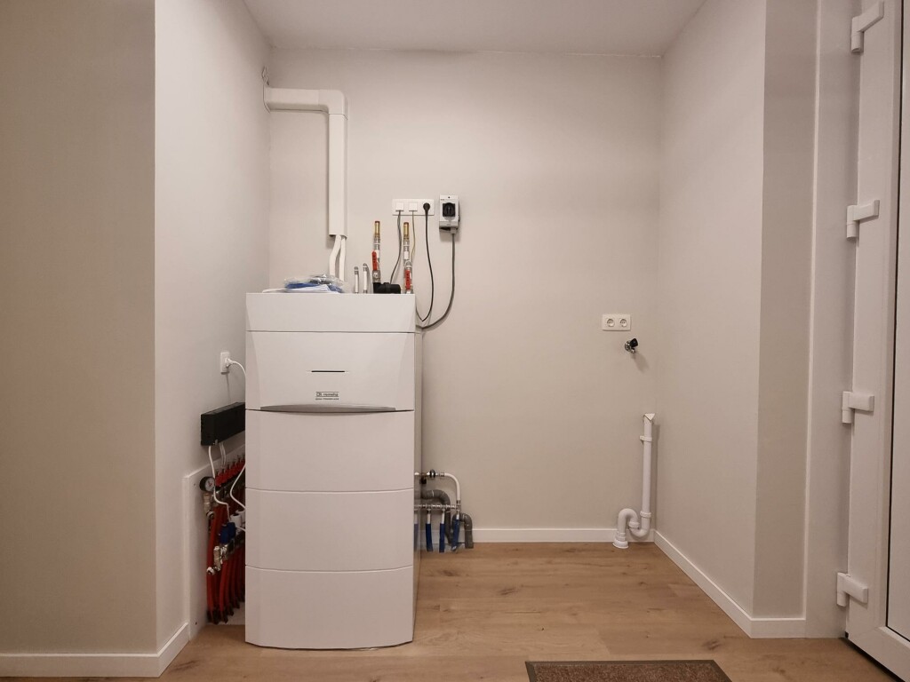 De verwarming wordt met vloerverwarming voorzien door middel van een warmtepomp. Slaapkamers en woonkamer zijn met eigen thermostaat te regelen. Warmwater voorzien via de warmtepomp door middel van een elektrisch aangedreven boiler.