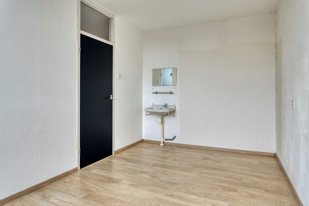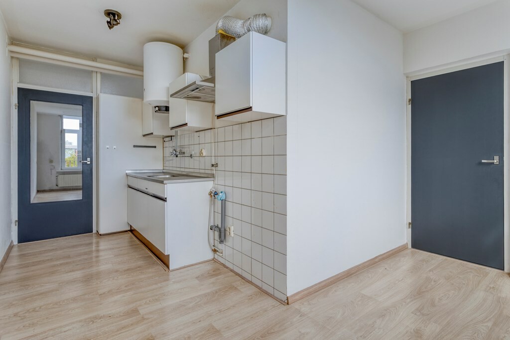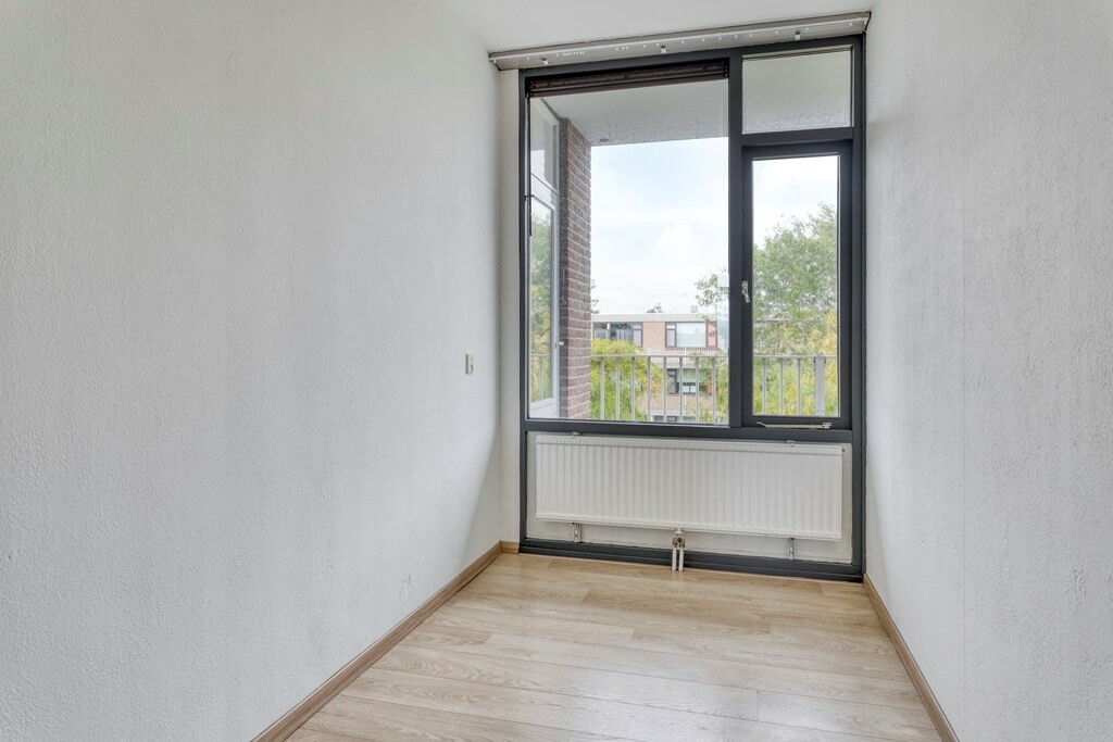 Binnen treft u een lichte woonkamer met laminaatvloer en toegang tot het zonnige balkon van circa 12 m², de perfecte plek om hier te genieten van een kop koffie of een goed boek. De keuken is eenvoudig, maar praktisch ingericht. Met drie slaapkamers biedt dit appartement volop mogelijkheden: denk aan een extra werk- of hobbyruimte.