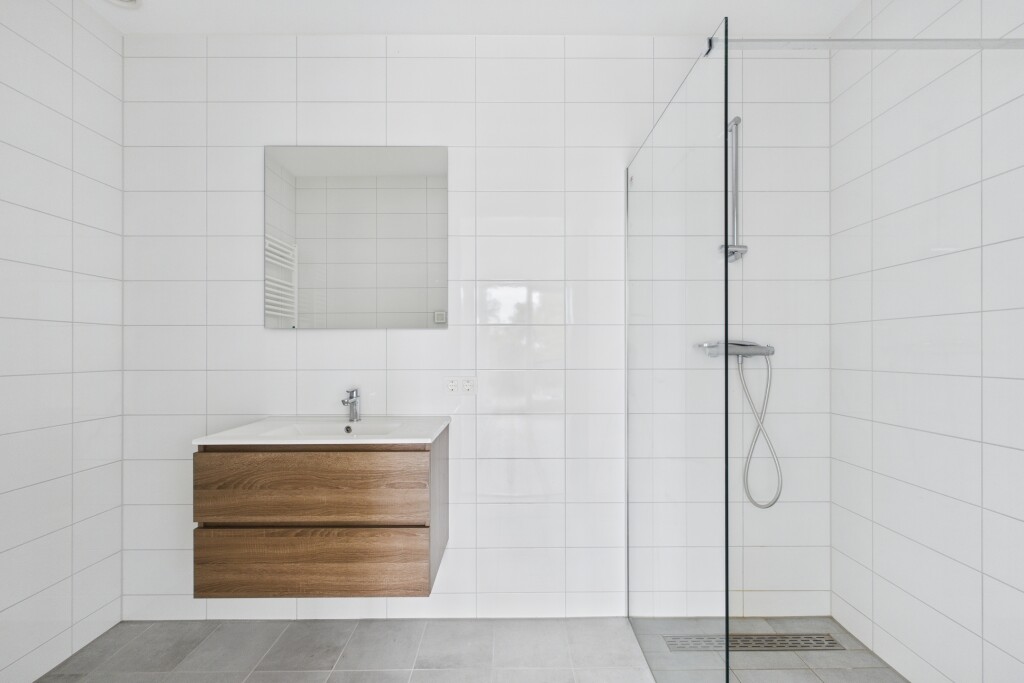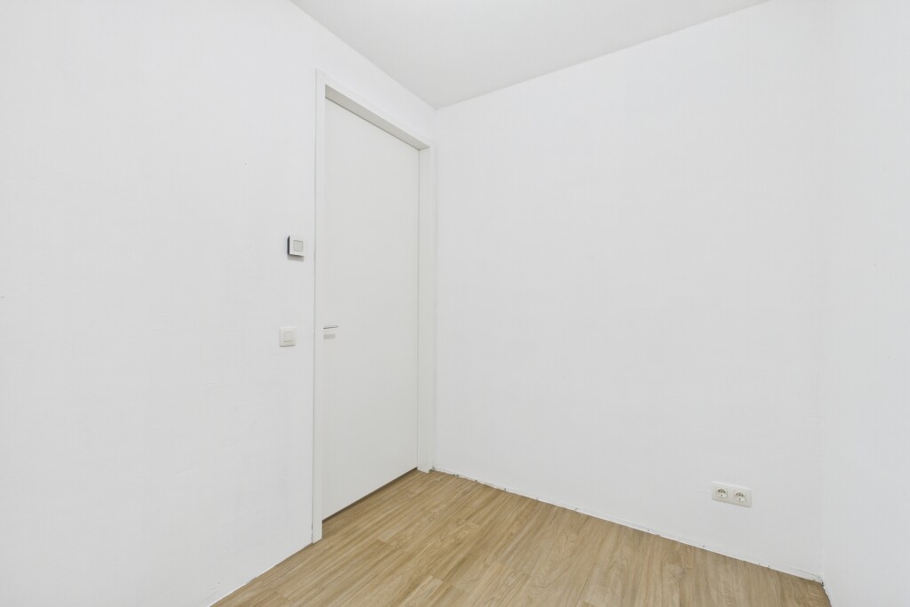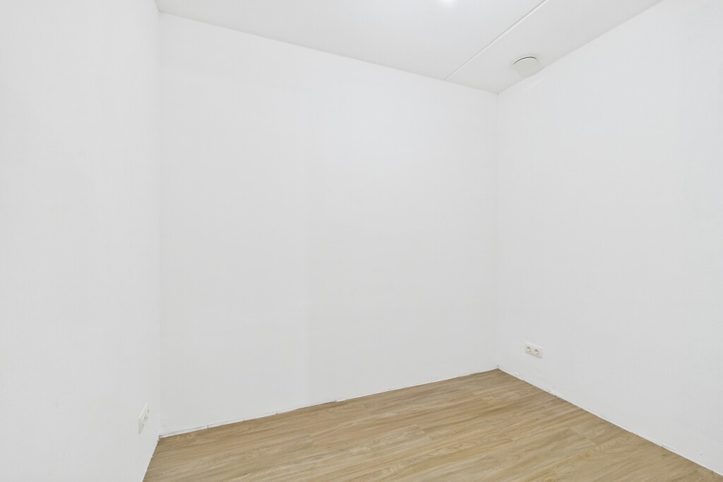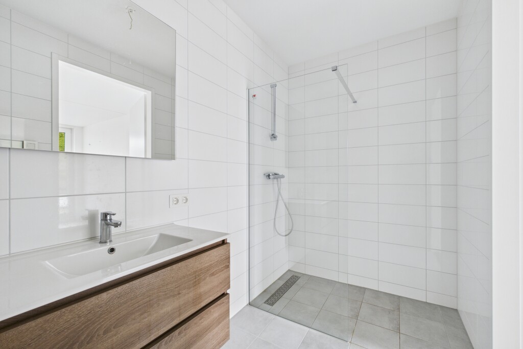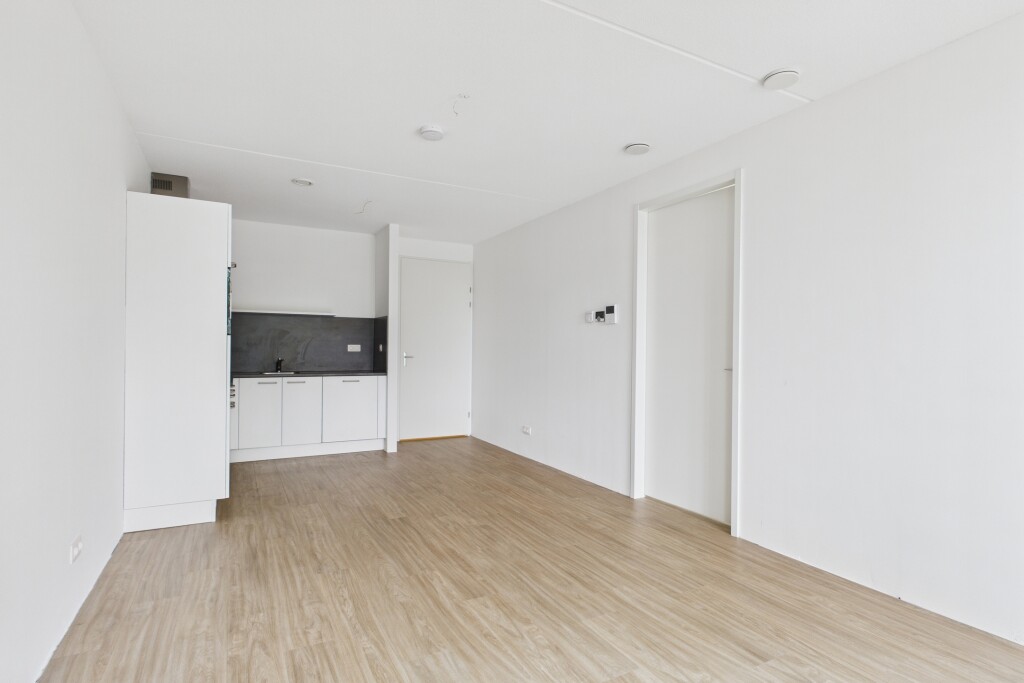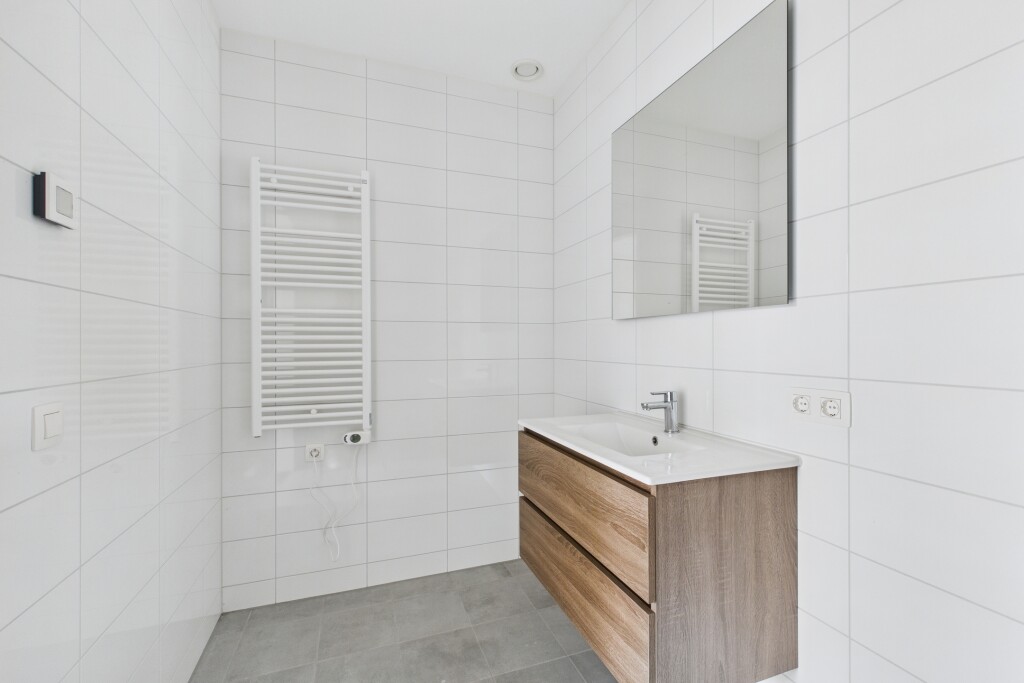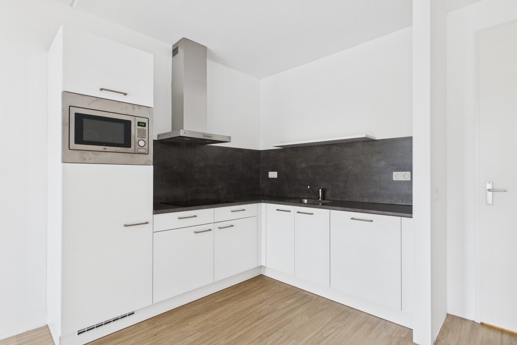 De keuken is uitgevoerd met een modern keukenblok voorzien van inbouwapparatuur. In de woonkamer ligt een pvc-vloer die zorgt voor een rustige en eigentijdse uitstraling. De badkamer sluit direct aan op de slaapkamer en is uitgerust met een inloopdouche en een wastafelmeubel met spiegel.