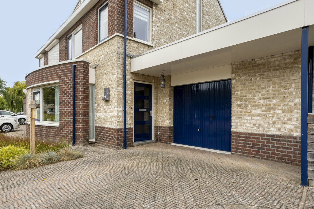 De woning beschikt over een aangebouwde, extra brede garage en een oprit met parkeergelegenheid voor 1 auto.