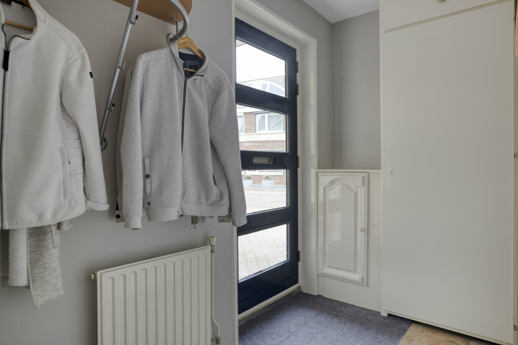 Bij binnenkomst betreedt u een verzorgde entree met meterkast. De ruimte is praktisch ingericht en biedt toegang tot de rest van de woning.