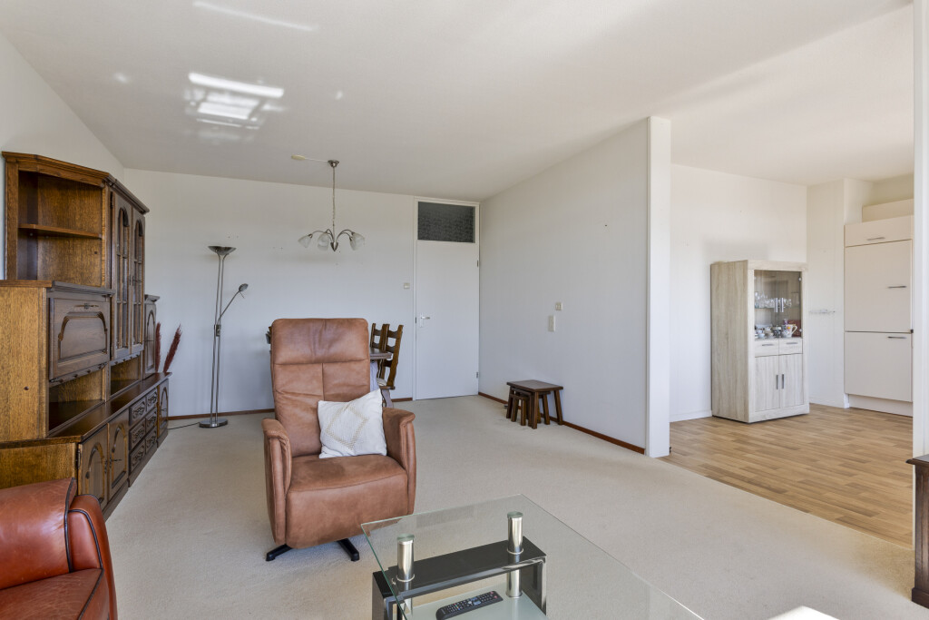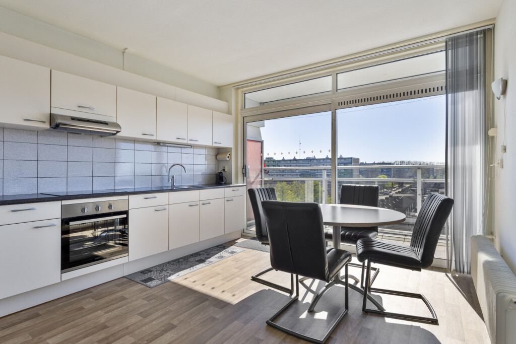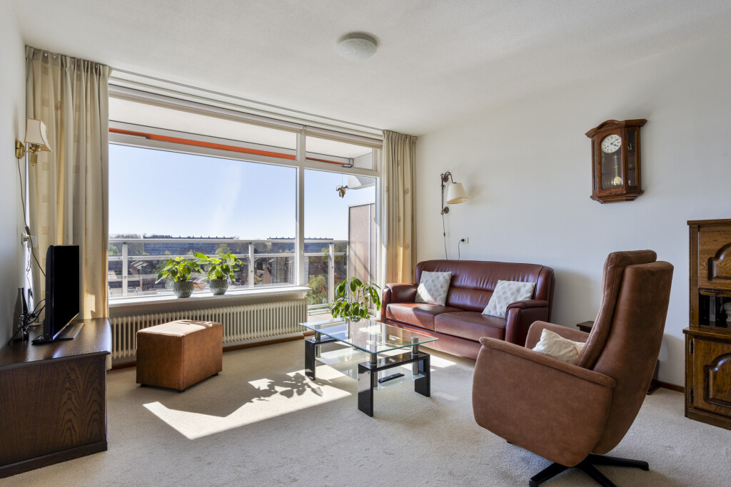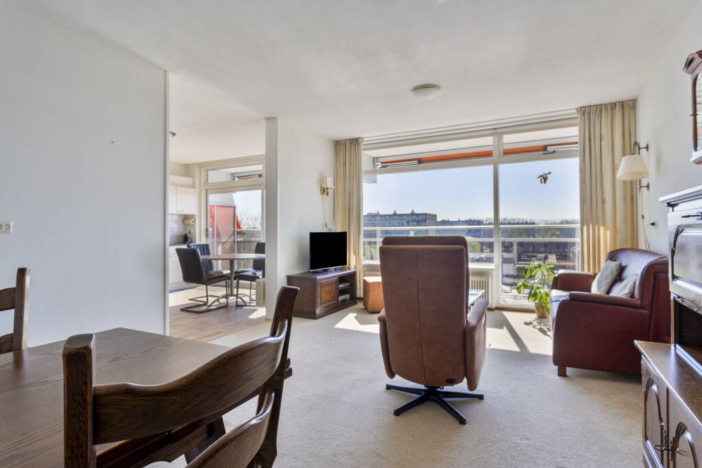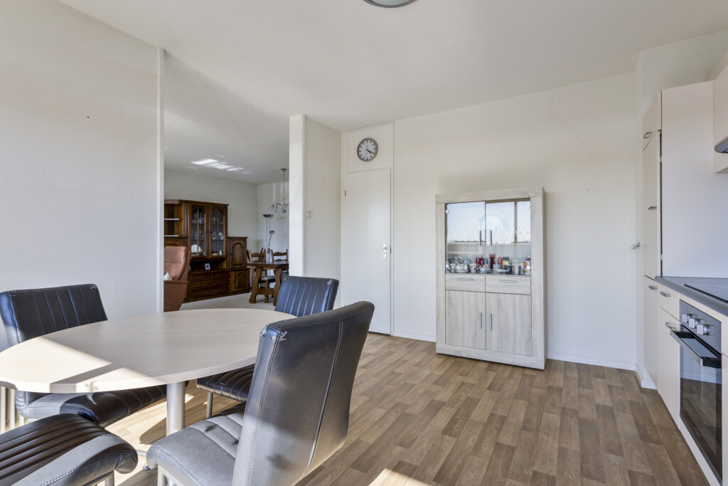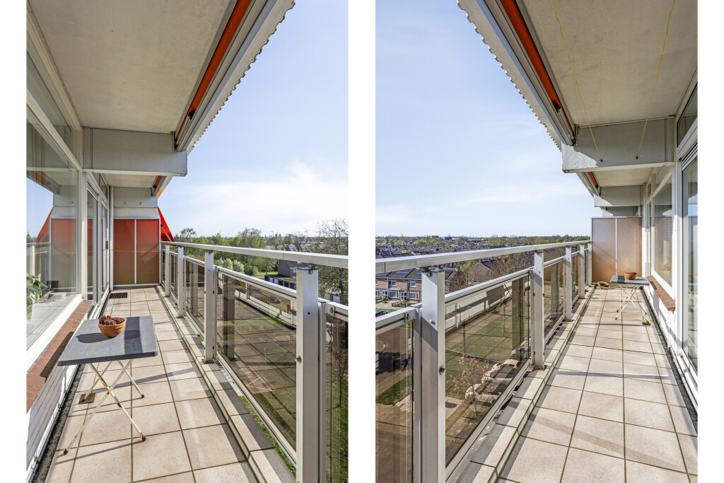 De vloer is voorzien van vinyl en tevens is er nog een berging waar ook de warmwater boiler hangt. Vanuit de keuken is via een schuifpui het balkon te bereiken. Vanaf de 5e verdieping heb je niet alleen veel privacy maar ook een mooi vrij en weids uitzicht over de wijk. Met een ligging op het zuidwesten ben je verzekerd van veel zon. Het balkon heeft 2 elektrisch bedienbare zonweringen.