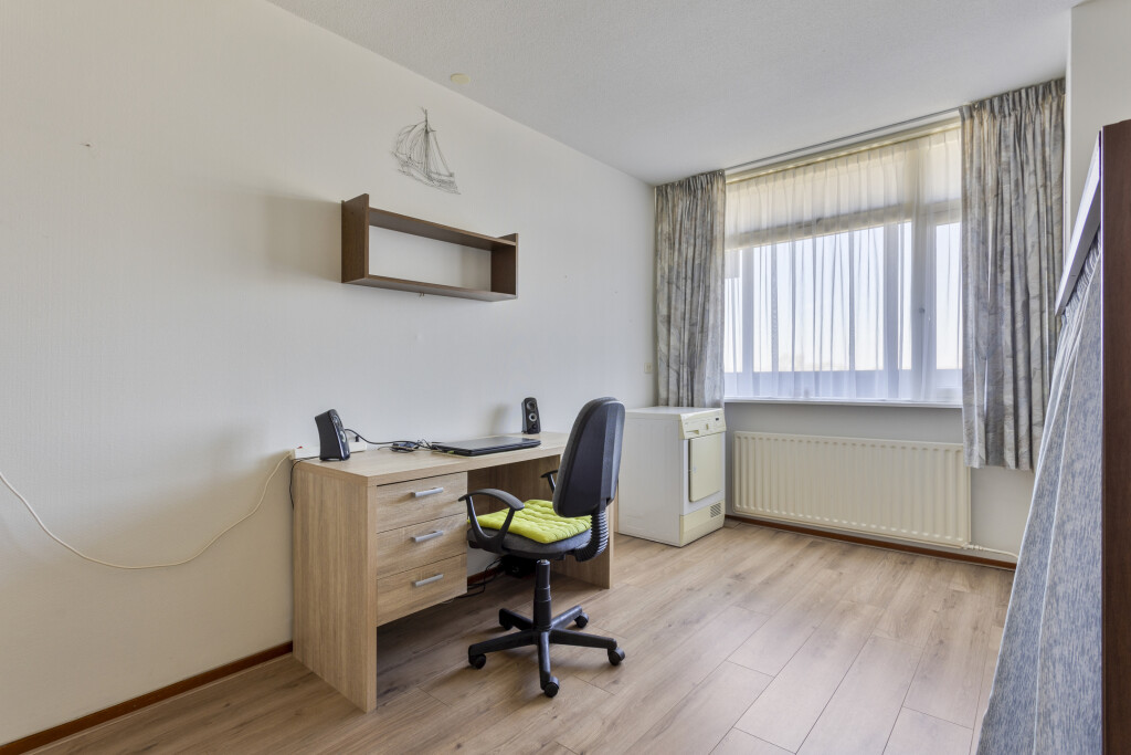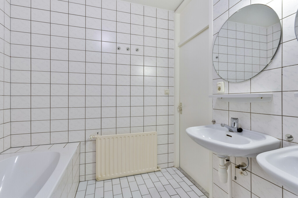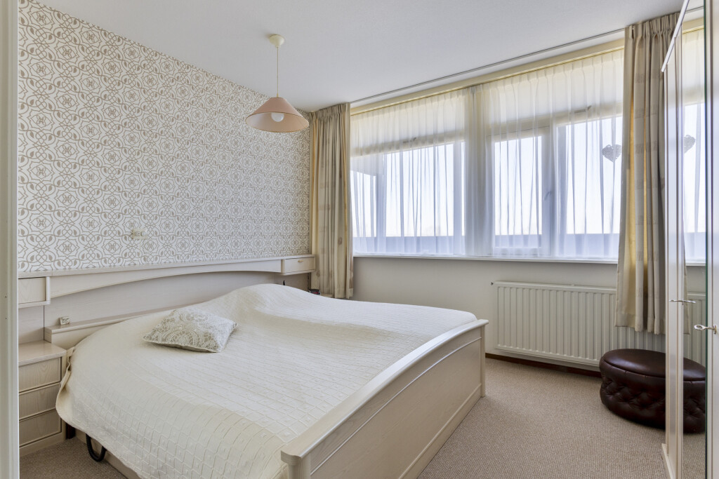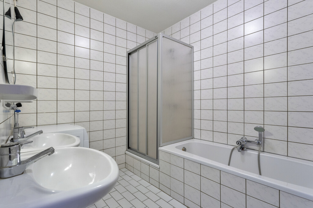 De twee slaapkamers zijn beiden goed van formaat en hebben een laminaat vloer. De badkamer is volledig betegeld en beschikt over een douche, ligbad en dubbele wastafel. Ook is hier de aansluiting voor de wasmachine.