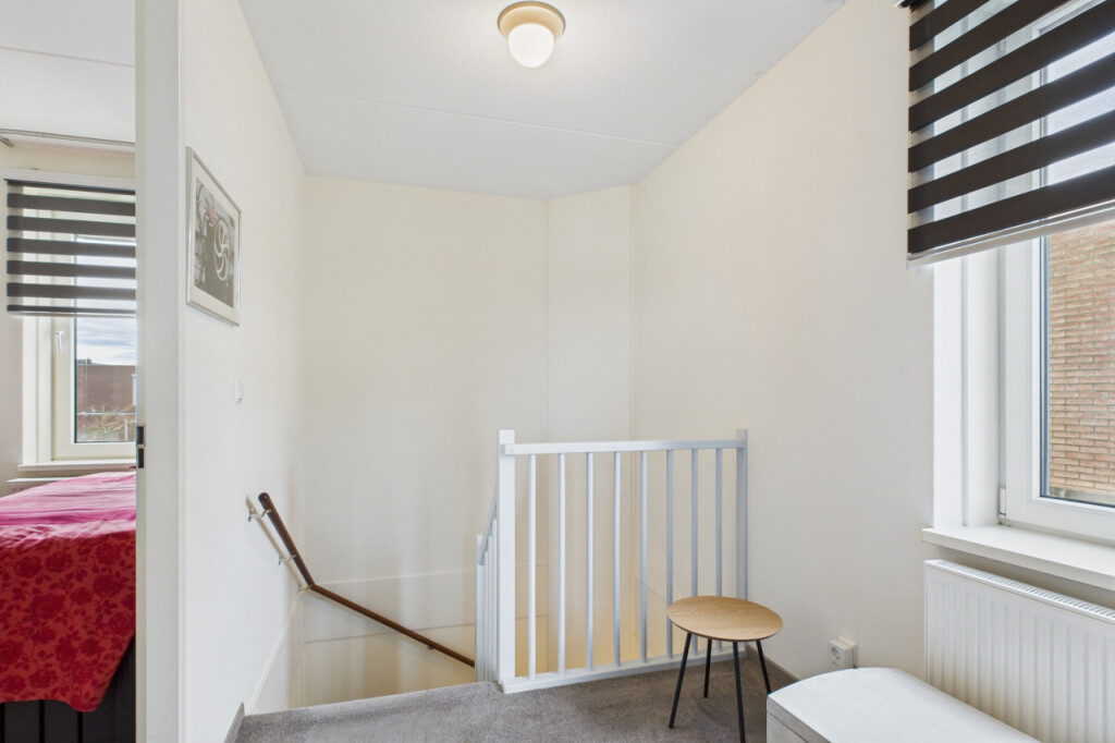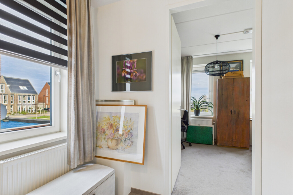 Op de eerste verdieping geeft de overloop toegang tot 2 ruime en comfortabele slaapkamers. Beide kamers zijn heerlijk licht en bieden volop mogelijkheden, bijvoorbeeld als slaapkamer, thuiskantoor of hobbyruimte.