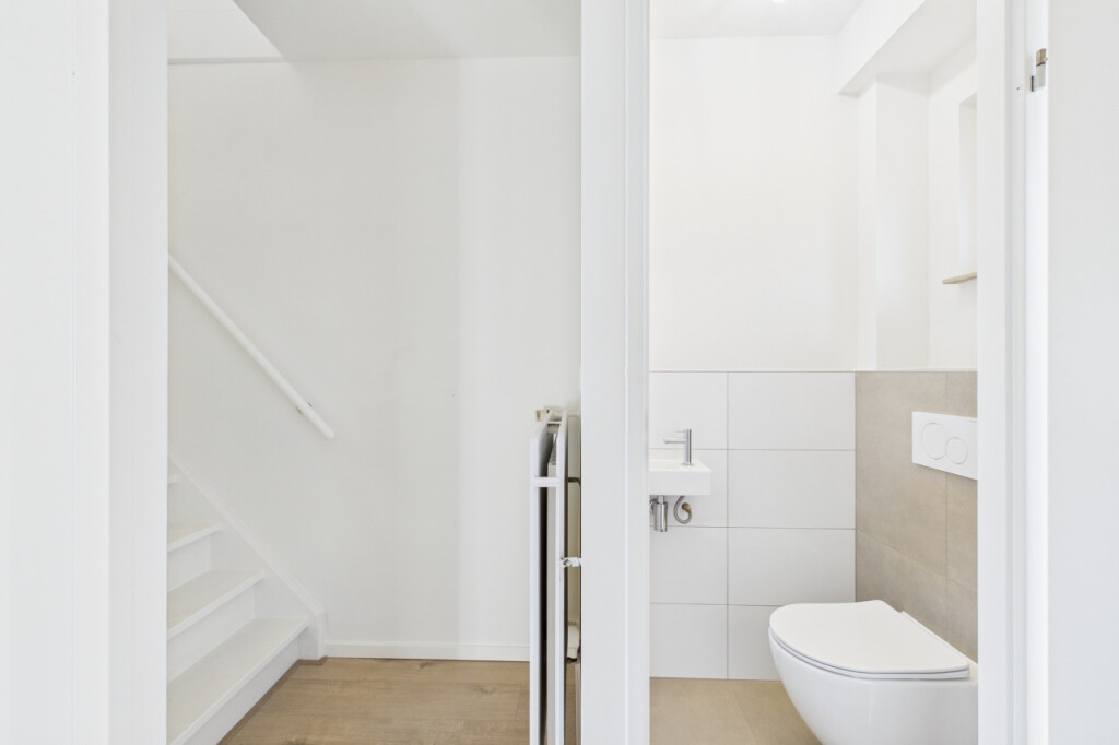 Bij binnenkomst in de hal tref je de meterkast, hangtoilet met fonteintje (2025) en de trapopgang naar de verdieping. De lichte woonkamer zorgt met zijn grote ramen voor een prettige sfeer en een mooi uitzicht op de tuin. De dichte keuken is voorzien van vloertegels en een inbouwkeuken met inbouwapparatuur.