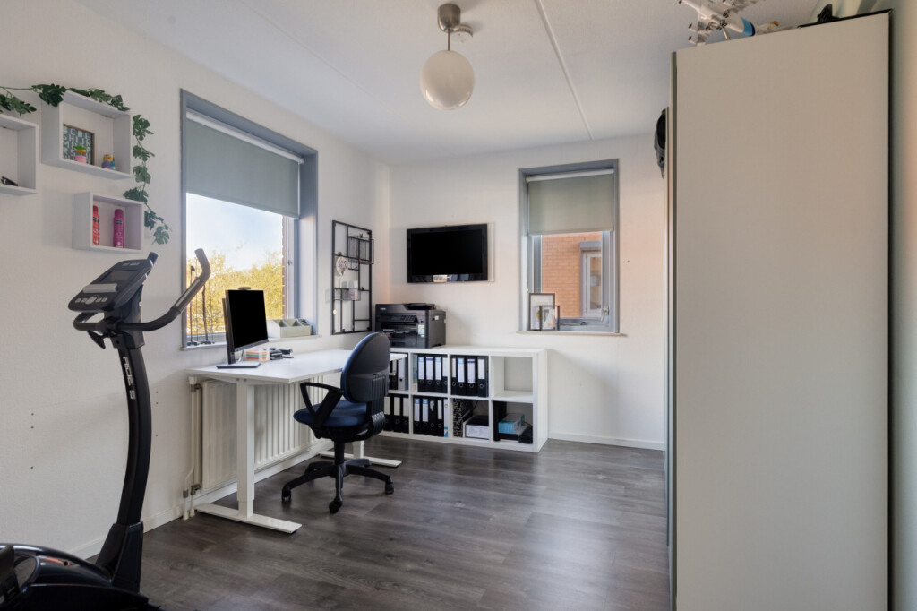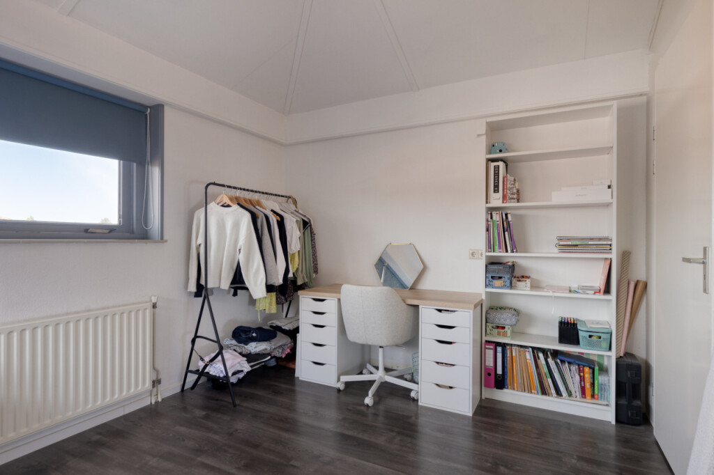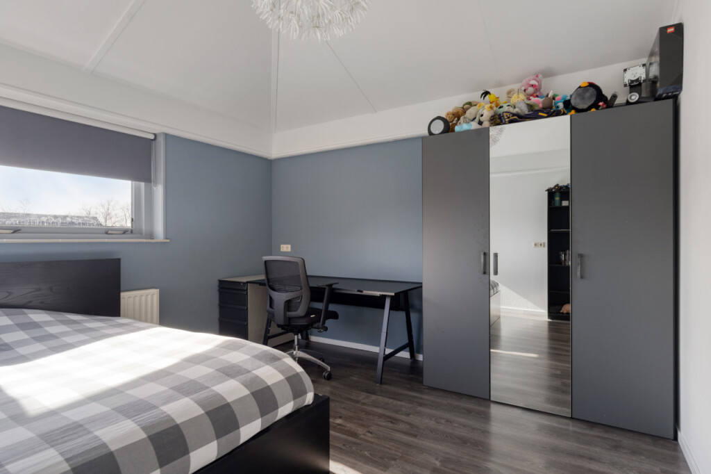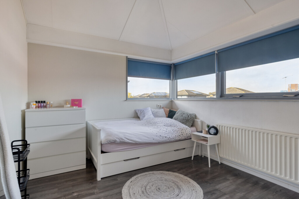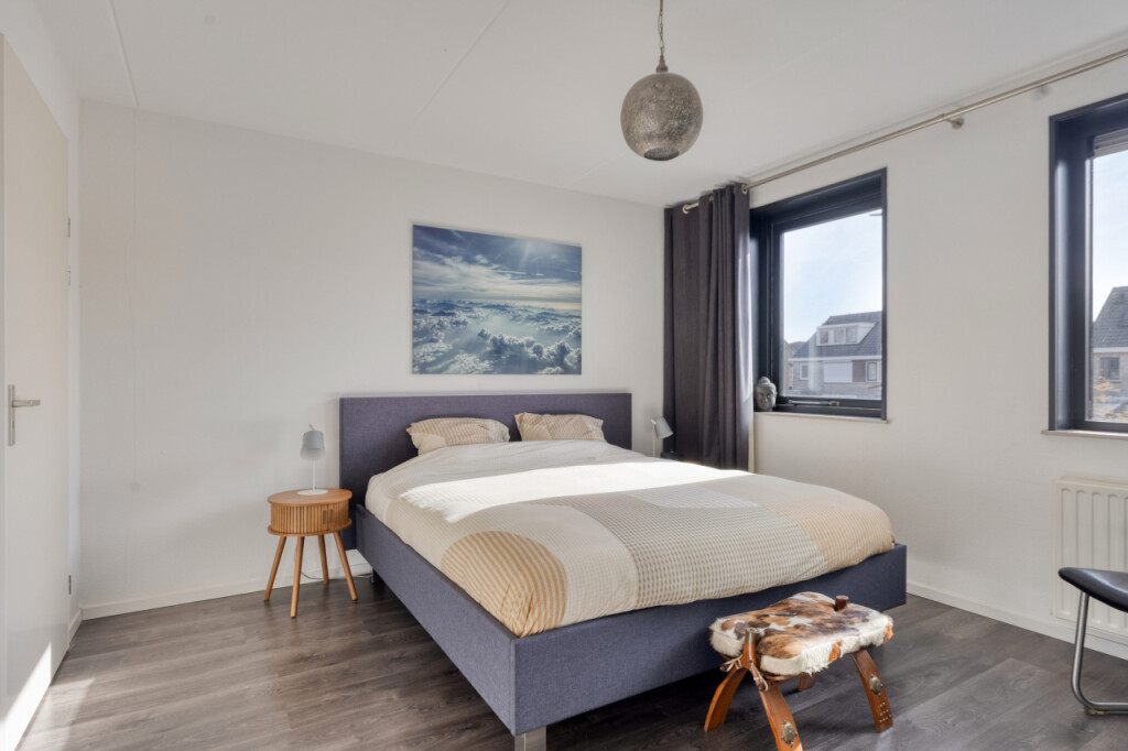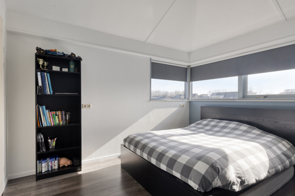 Via een vaste trap bereik je de tweede verdieping, waar zich nog twee volwaardige slaapkamers bevinden. Door de open nok en grote raampartijen voelen deze ruimtes extra ruim en licht aan. Deze verdieping biedt diverse mogelijkheden, bijvoorbeeld als slaap-, werk- of hobbyruimte.