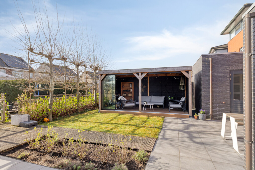 De achtertuin is verzorgd aangelegd en gunstig gelegen, waardoor je optimaal kunt genieten van zon en privacy. De tuin beschikt over een sfeervolle overkapping met elektra en verlichting, ideaal voor lange zomeravonden. Daarnaast is er een tuinkas aanwezig en directe toegang tot de achtergelegen waterpartij met een zitgedeelte.