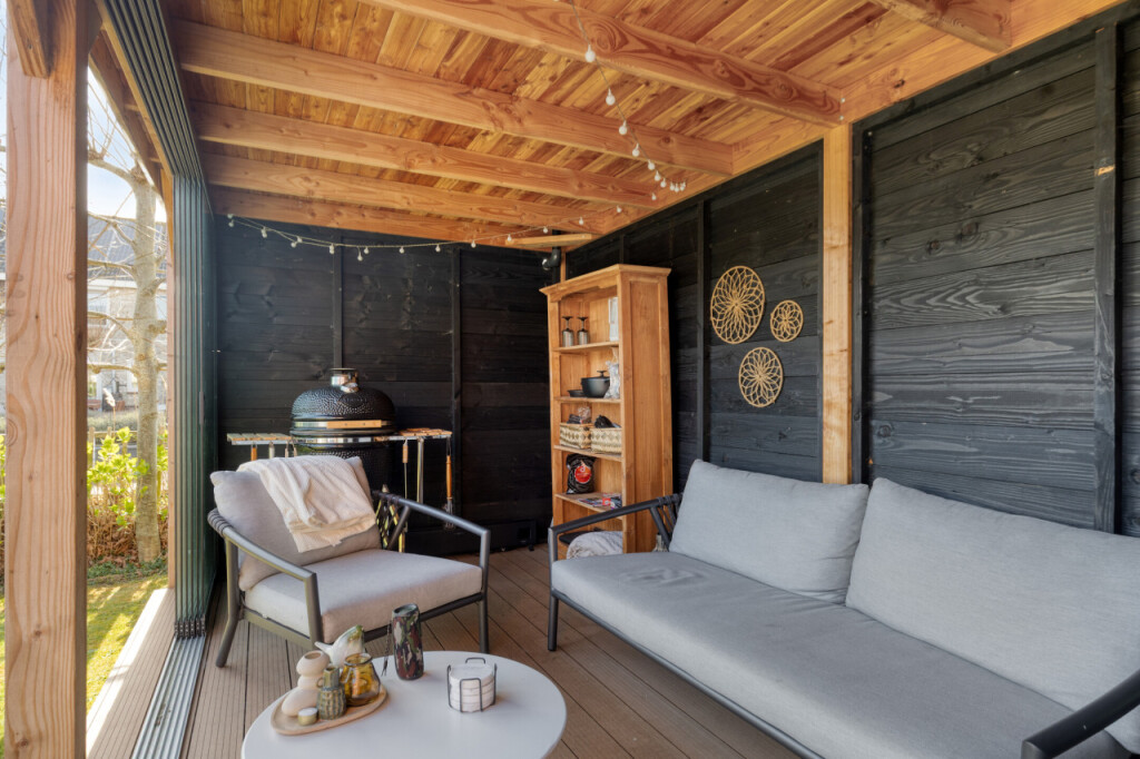 ⢠Sfeervolle tuinoverkapping met elektra en verlichting