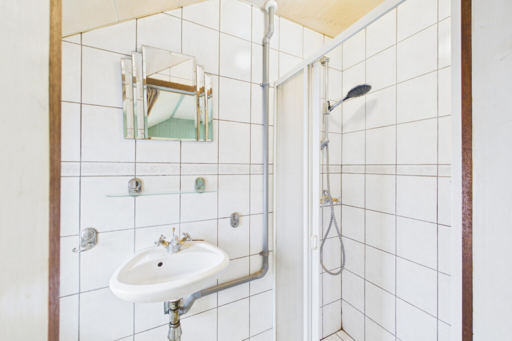 Op de eerste verdieping bevindt zich de overloop die toegang geeft tot drie slaapkamers. Eén van de kamers beschikt over een vaste kast. Vanuit een andere slaapkamer is de badkamer bereikbaar, die is ingericht met een douche en een wastafel.