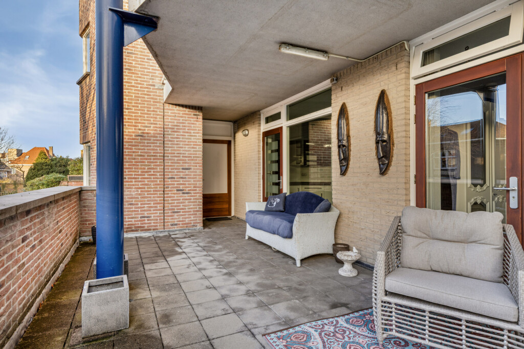 Het terras is ruim van formaat (circa 32 m²) en is gelegen op het zonnige zuiden, half overdekt en beslaat de gehele breedte van het appartement. Er is elektra en verlichting aanwezig en een ruime bergkast(inclusief electra) voor het opbergen van de o.a. de tuinkussens. Tevens heeft u toegang tot de trappenhal(vluchtweg).