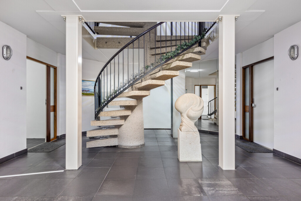 Via het portaal komt u in de centrale hal met bellentableau, trap en lift naar alle verdiepingen.