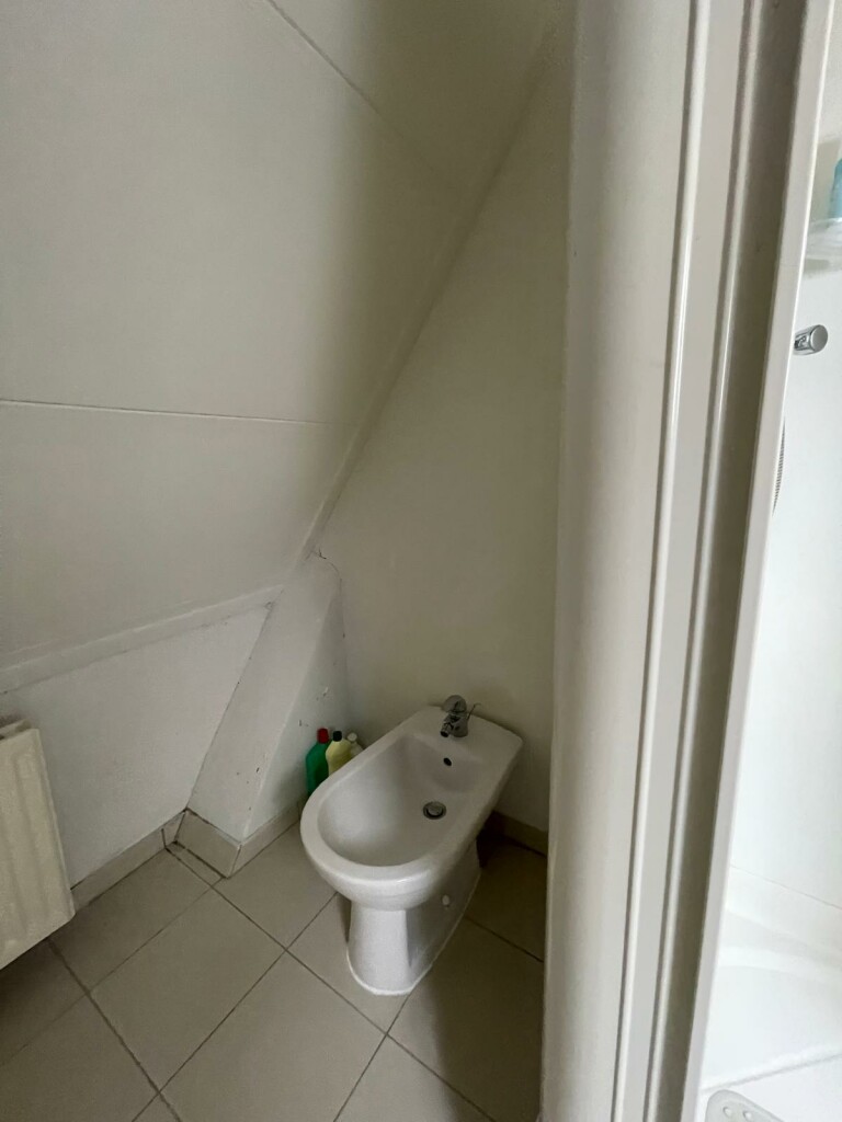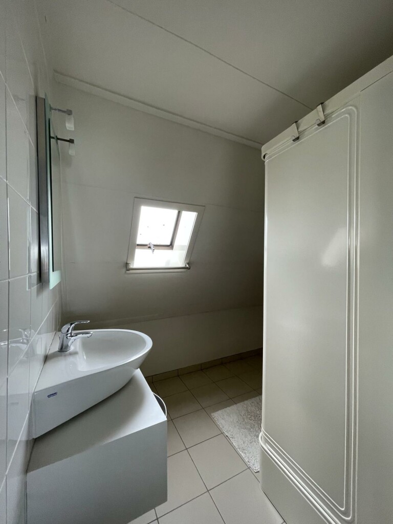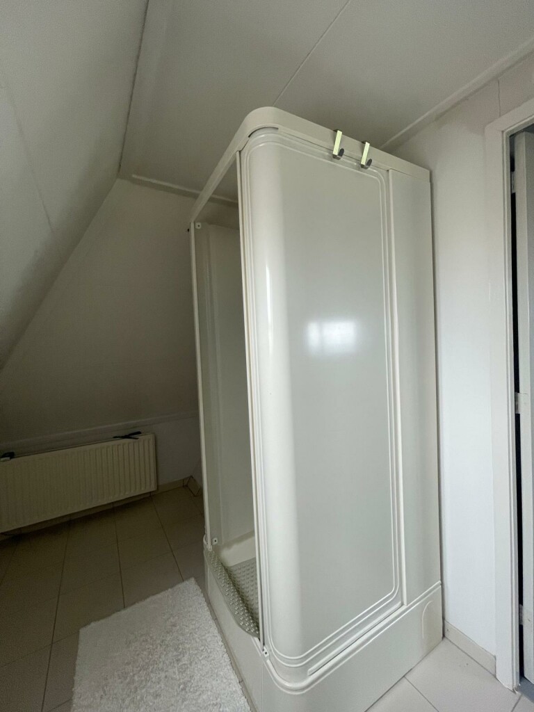 Slaapzolder met aparte badkamer met toilet en douche en bergkasten.