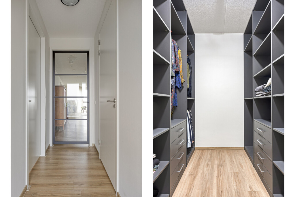 De fraaie badkamer en walk-in-closet zijn tussen de slaapkamers gesitueerd.