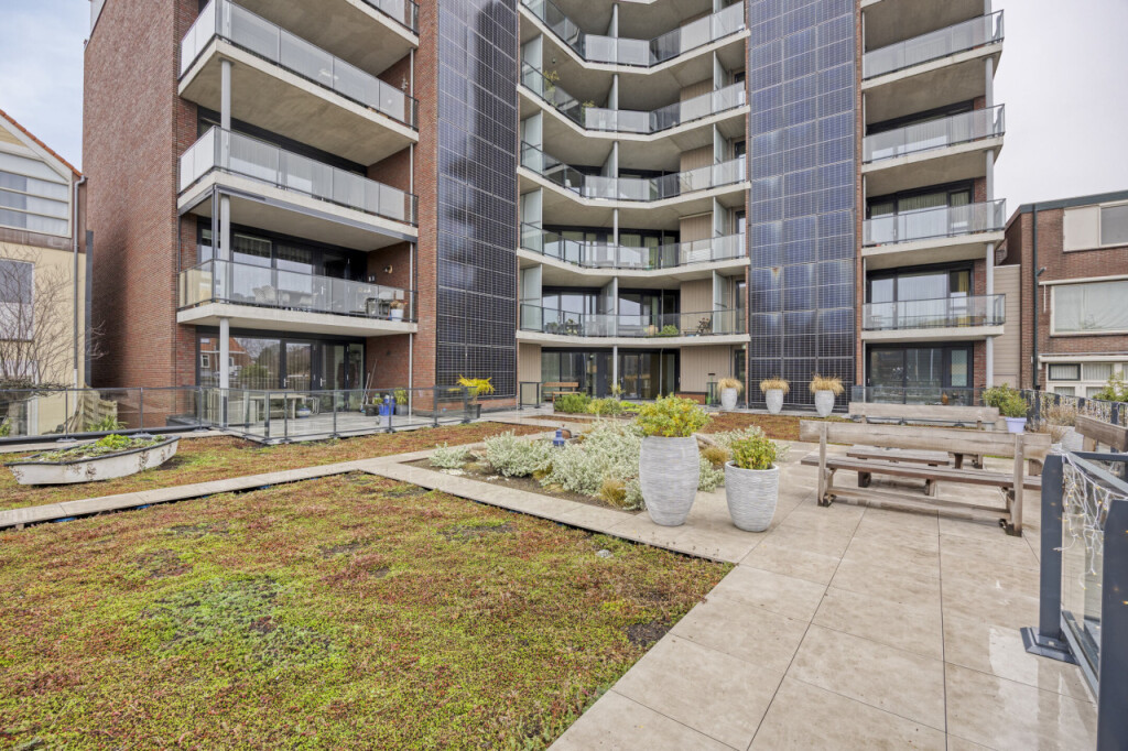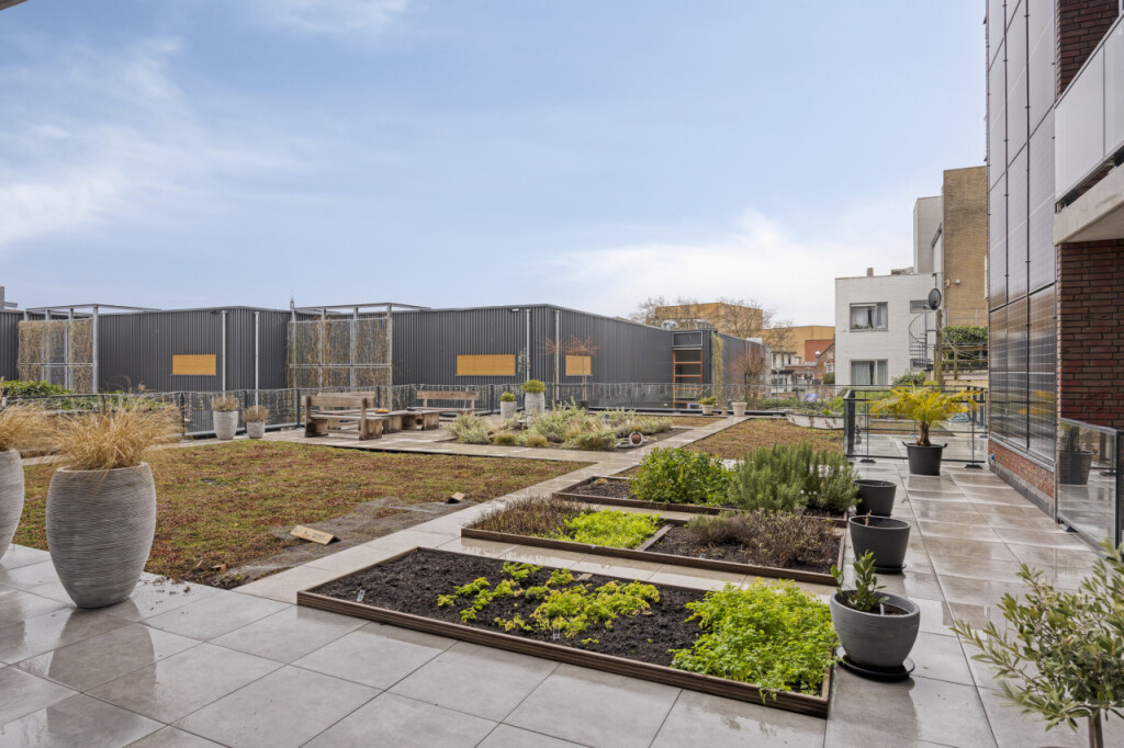 De prachtige inkom van het complex met brievenbussen, bellentableau en een âBringmeâ pakketservice geeft toegang tot de centrale hal en het prachtige gemeenschappelijke daktuin.
