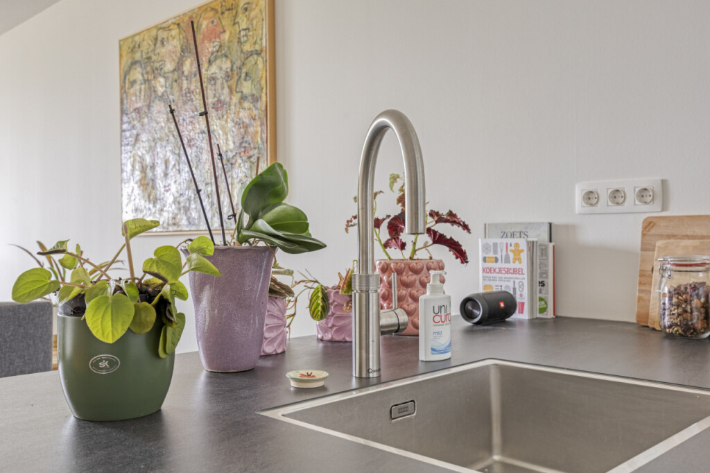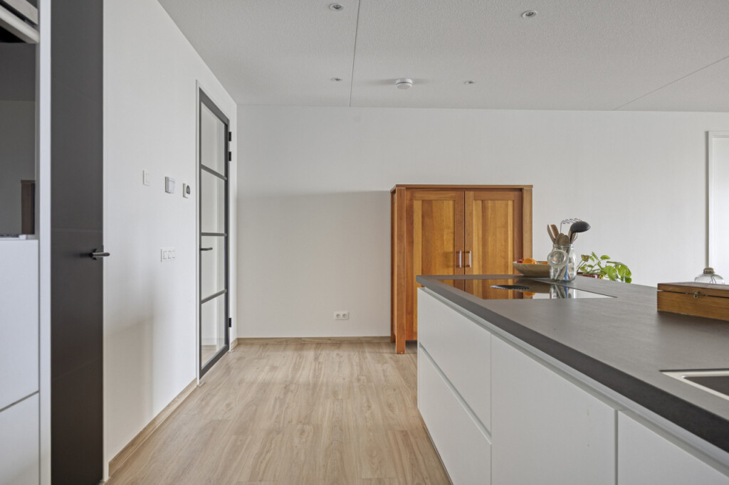 De luxe keuken met kookeiland biedt veel opbergruimte en is uitgevoerd met een inductiekookplaat, combimagnetron, koelkast met vriezer, vaatwasmachine en Quooker kraan. Een heerlijke plek om de lekkerste gerechten te bereiden en met familie en vrienden te genieten van het goede leven en het mooie uitzicht.