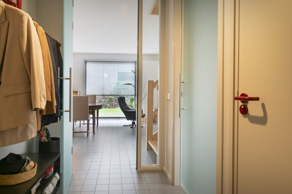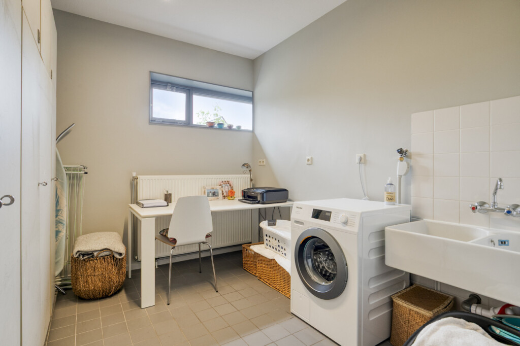 Via de entree kom je in de hal met meterkast en toilet. Hier is ook toegang tot een ruime bijkeuken met aansluitingen voor het witgoed en meer dan voldoende bergruimte.