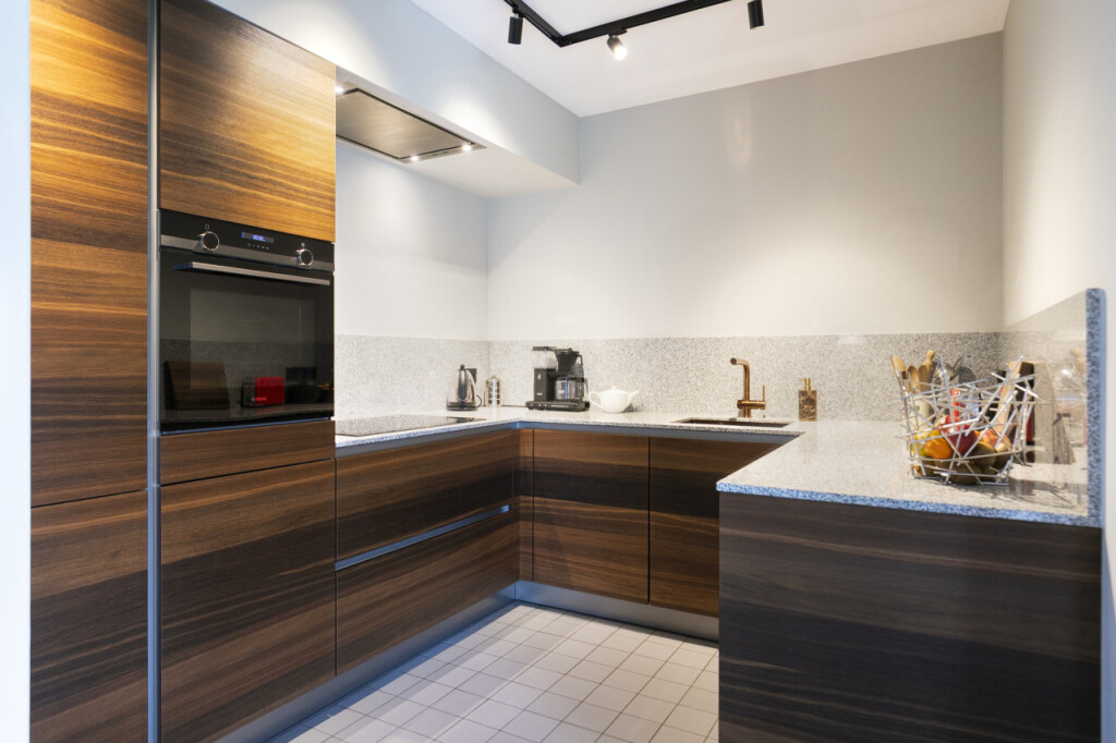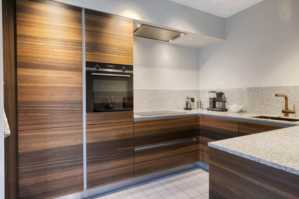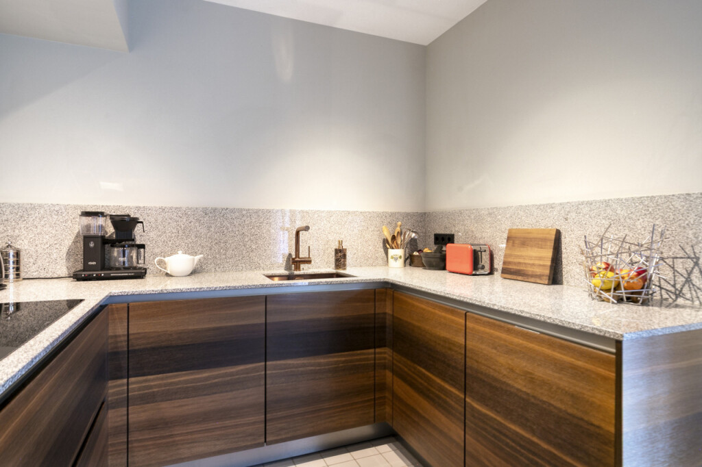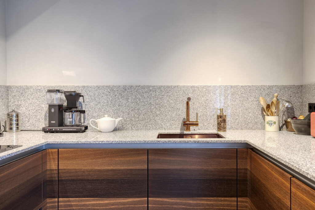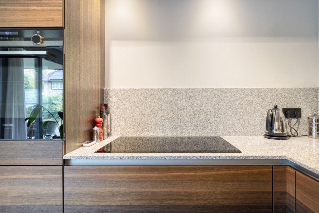 De gezellige woonkamer van bijna 60 m2 heeft een open trappartij naar de eerste verdieping. Aangrenzend vind je de moderne stijlvolle Siematic keuken, luxe afgewerkt en compleet met diverse inbouwapparatuur zoals een kookplaat, oven, afzuigkap, koelkast en vaatwasser.