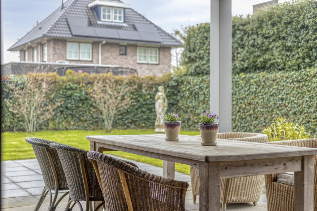 Dankzij de ruime opzet is er genoeg plek voor meerdere zitjes en speelruimte. De ingebouwde sfeervolle overkapping zorgt voor extra comfort, waardoor je ook bij minder weer heerlijk buiten kunt zitten. In deze unieke woning vind je alle ruimte en comfort die je nodig hebt, in een prettige en kindvriendelijke omgeving.