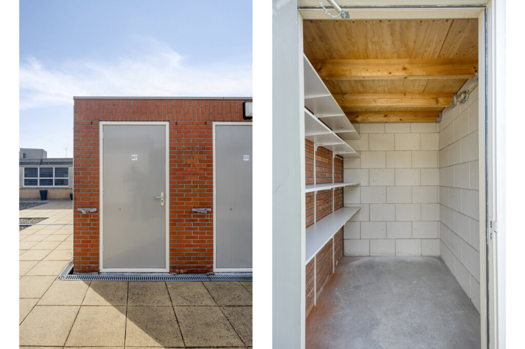 De bijbehorende afgesloten berging is eveneens op de 1e verdieping gelegen en is voorzien van elektra.