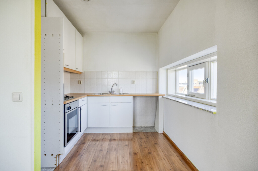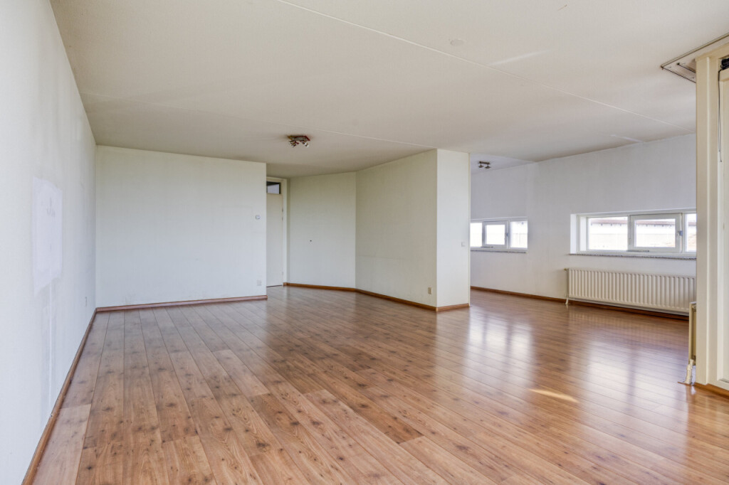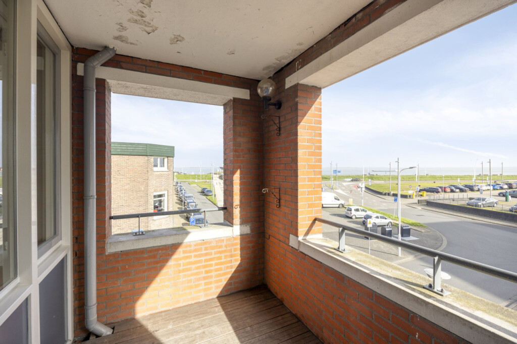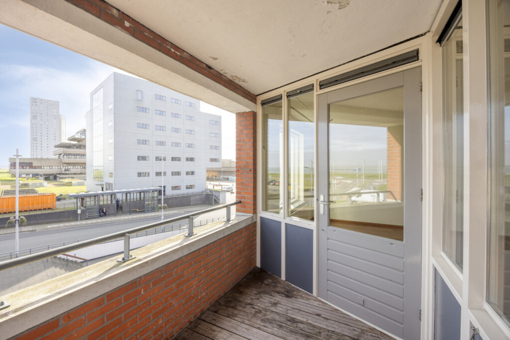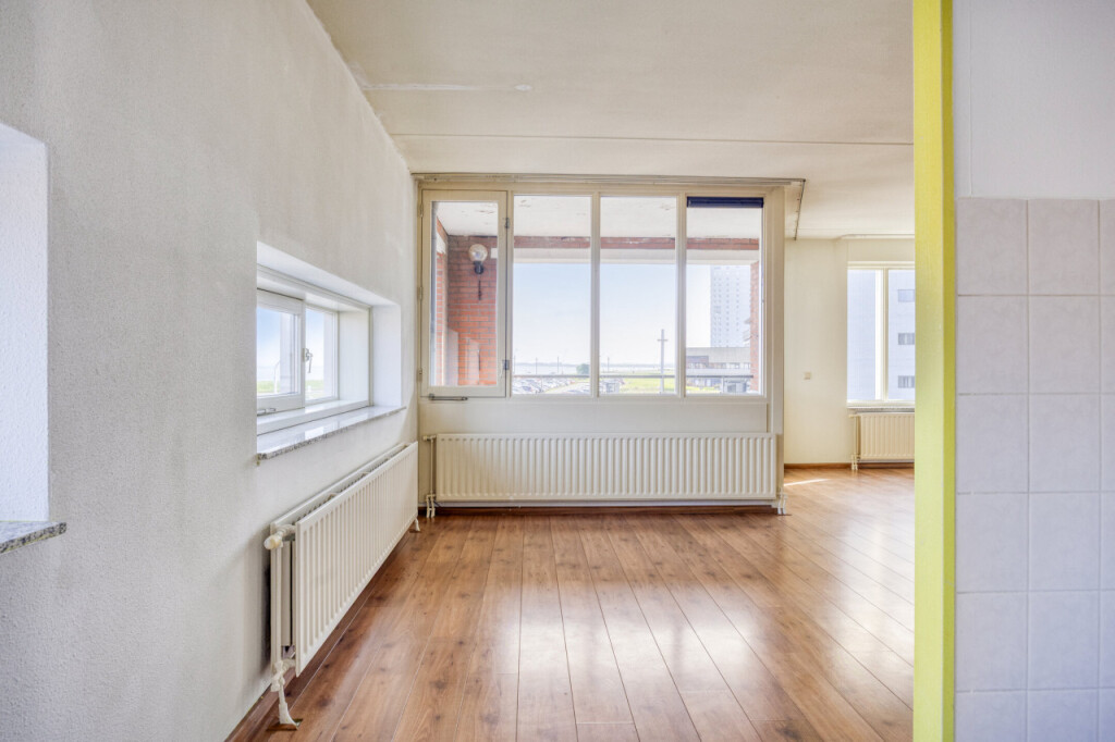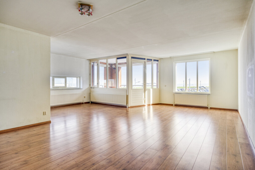 De ruime woonkamer met half open keuken heeft door de grote raampartijen een aangename lichtval en fraai uitzicht over de Westerschelde en de drukbevaren Westerschelde. Vanuit de woonkamer is de loggia op het noordoosten bereikbaar die een beschutte buitenruimte biedt met eveneens een schitterend zicht op de âScheldeâ. De eenvoudige half open keuken is in hoekopstelling geplaatst en eenvoudig uitgevoerd met gaskookplaat en afzuigkap.