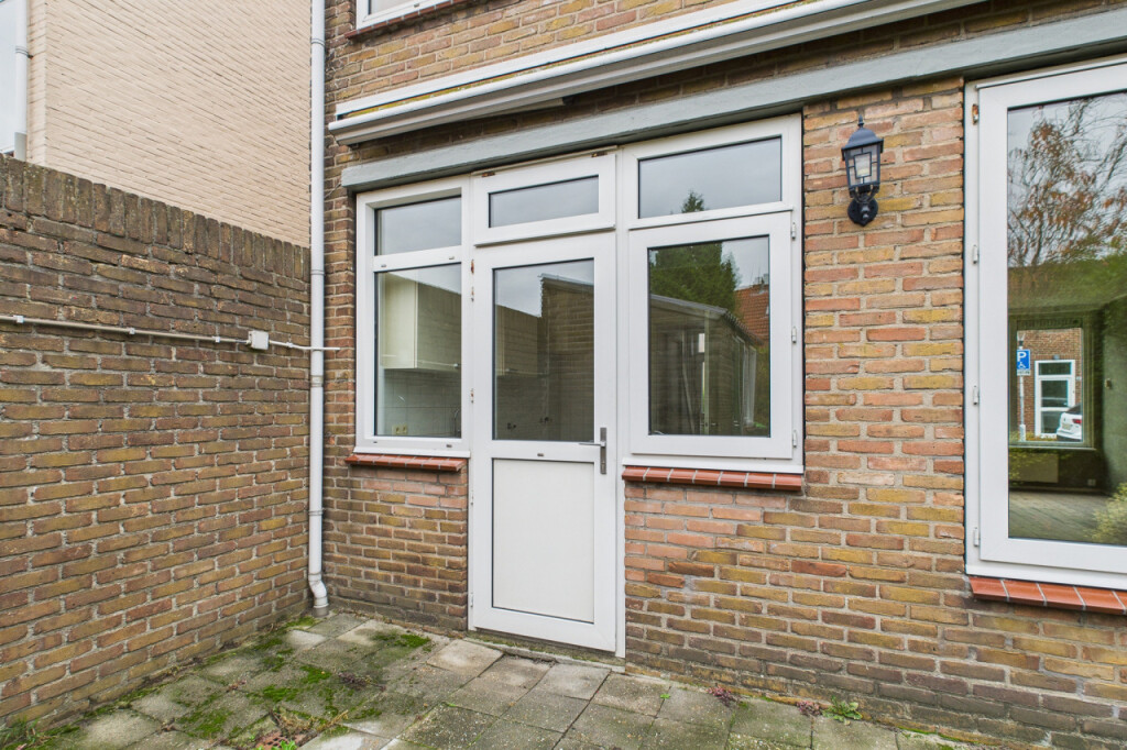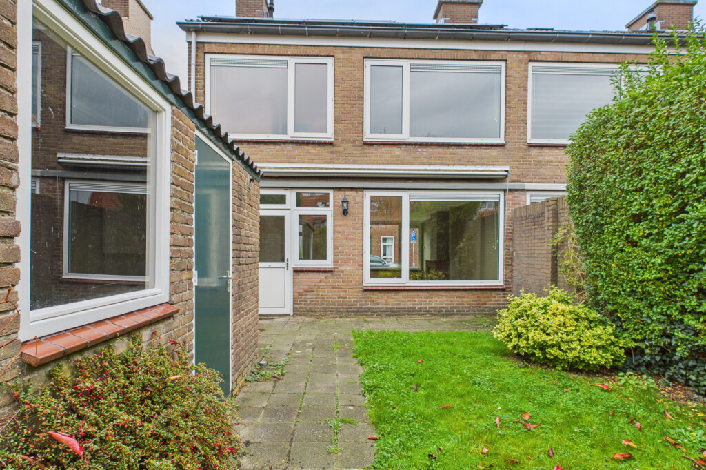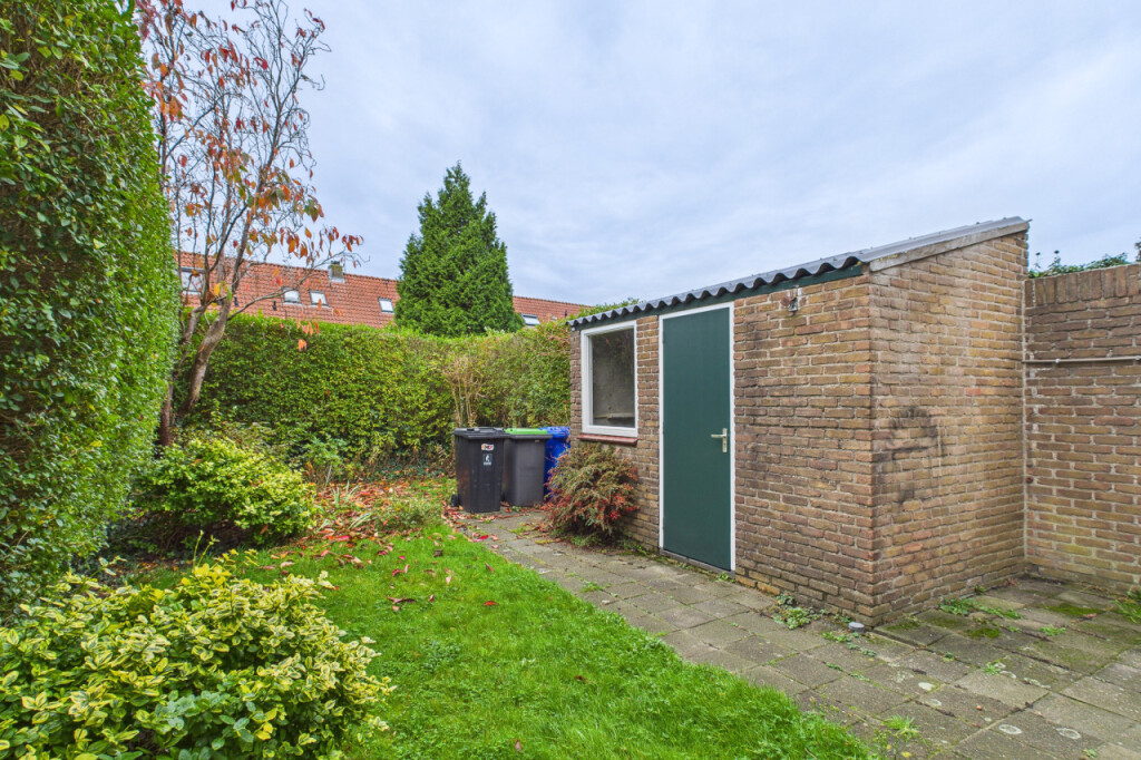 De woning beschikt over een voor- en achtertuin, waarbij de achtertuin is voorzien van een achterom en een vrijstaande stenen berging.