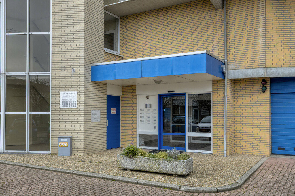 Entree via de centrale hal met intercomsysteem en brievenbussen. Via de centrale hal zijn de bergingen te bereiken.