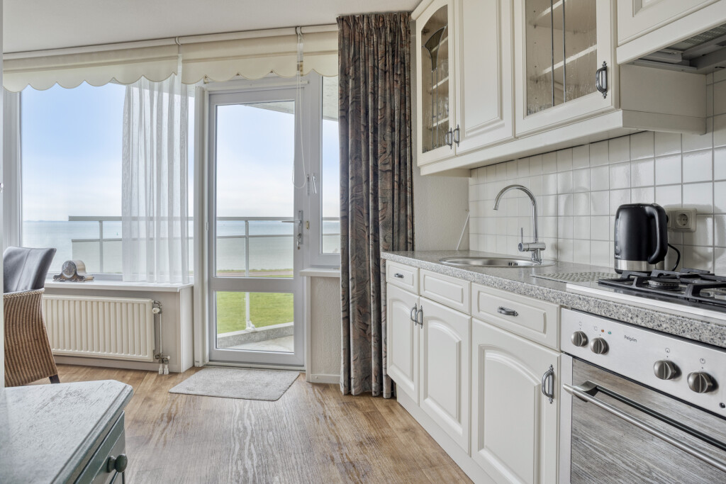 Het balkon is gelegen op het noordoosten en heeft een oppervlakte van circa 10 m². Vanaf deze fijne buitenruimte geniet u in alle rust van het levendige buitenleven op de Scheldedijk, terwijl u toch op comfortabele afstand blijft.