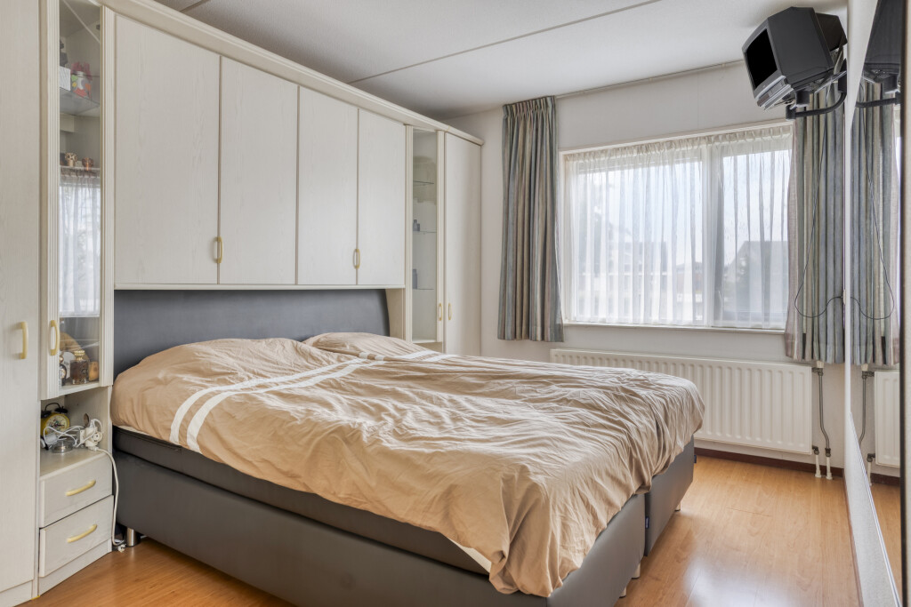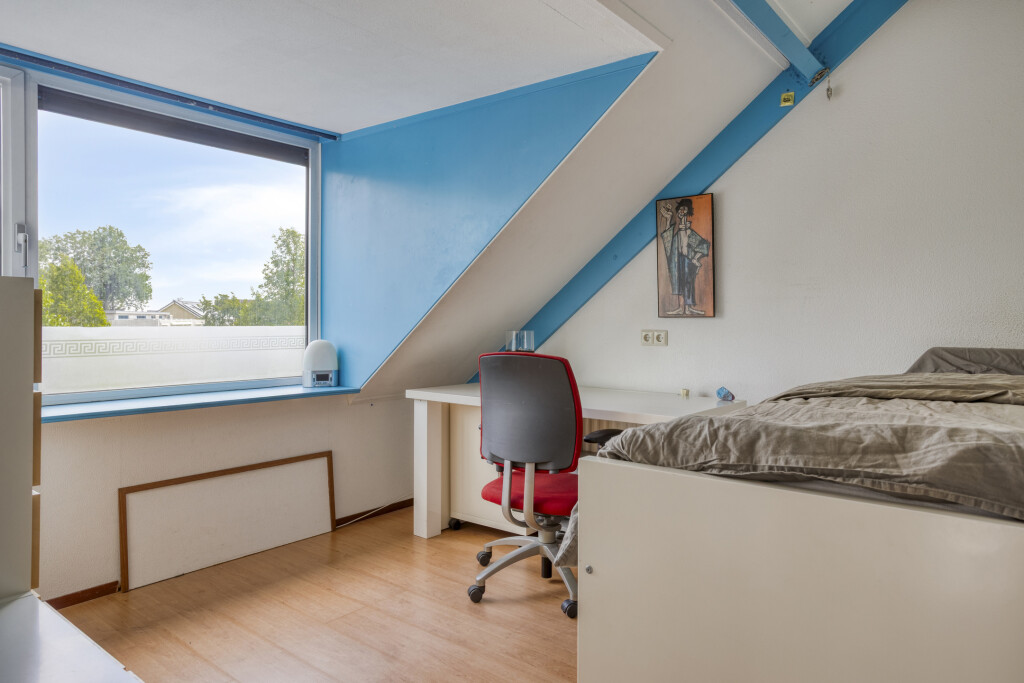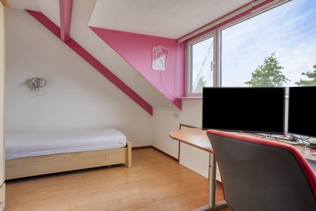 Op de tweede verdieping zijn er nog 2 ruime slaapkamers, beiden voorzien van een ruime dakkapel (2004) met zonwerende screens en een laminaatvloer met berging achter de knieschotten. Daarnaast is er nog een extra kamer, die te gebruiken is als werkplek.