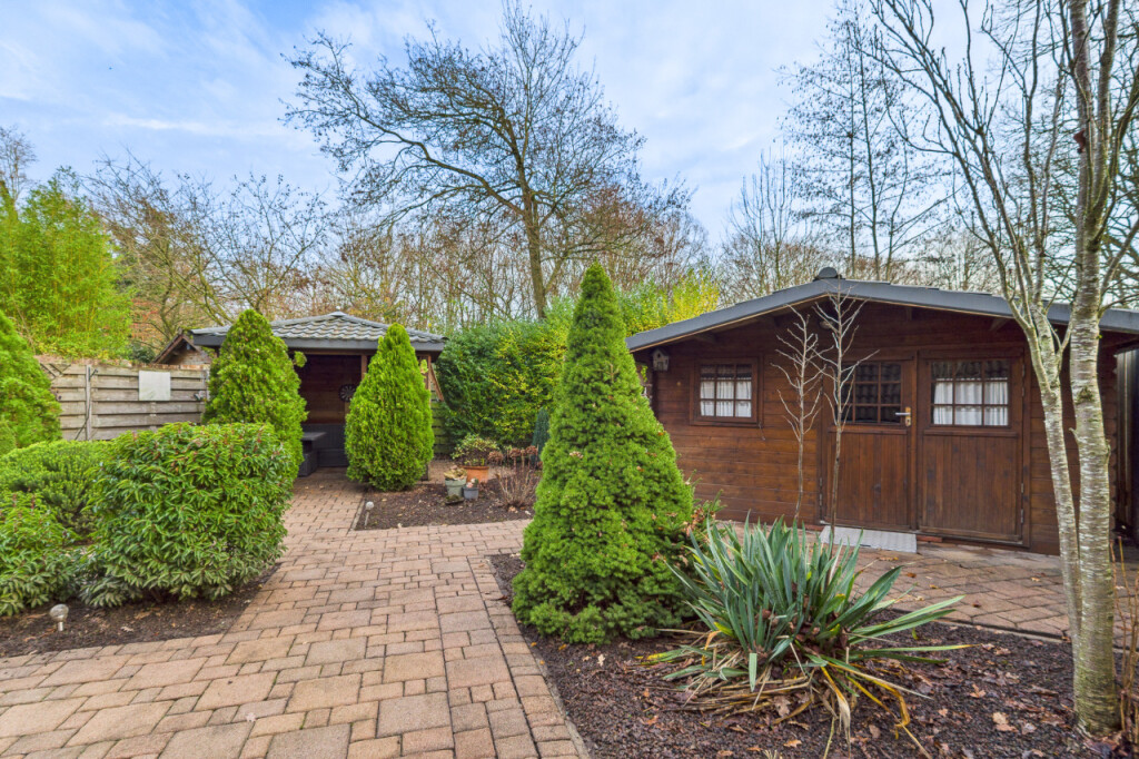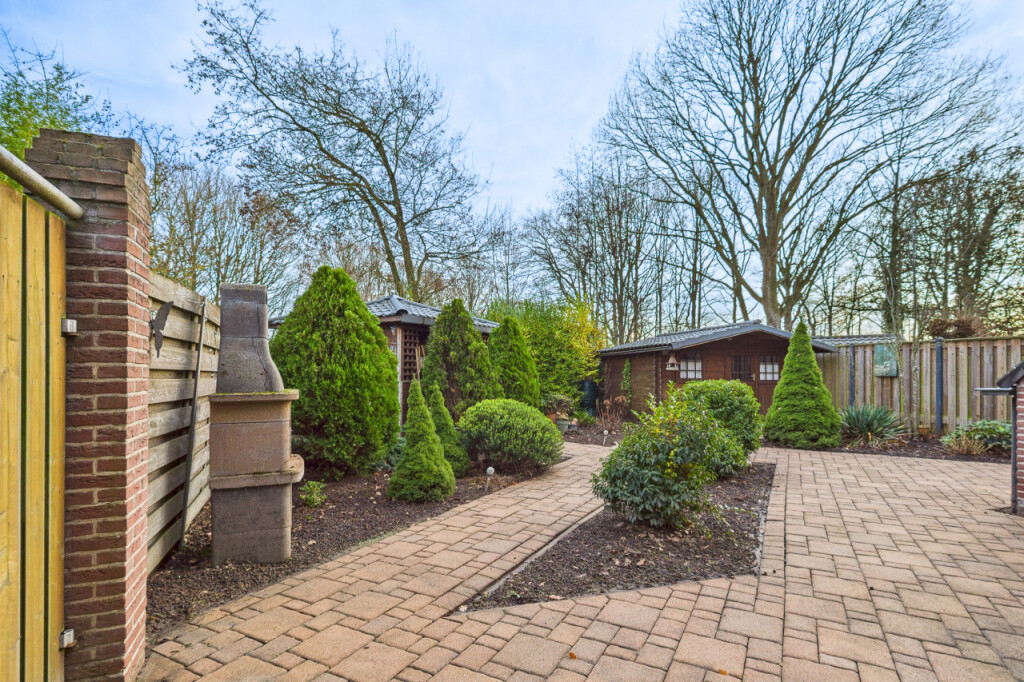 De tuin is een heerlijke plek om volop van het buitenleven te genieten. Dankzij de ligging op het zuidoosten kun je hier al vroeg op de dag van de zon genieten en tot in de middag buiten zitten. De tuin is met zorg aangelegd en biedt een prettige afwisseling van een ruim terras, groene plantenborders en een gezellige overkapping waar je ook op minder zonnige dagen fijn kunt verblijven. Het houten tuinhuis zorgt voor extra bergruimte en met de eigen achterom is de tuin bovendien praktisch en goed bereikbaar.