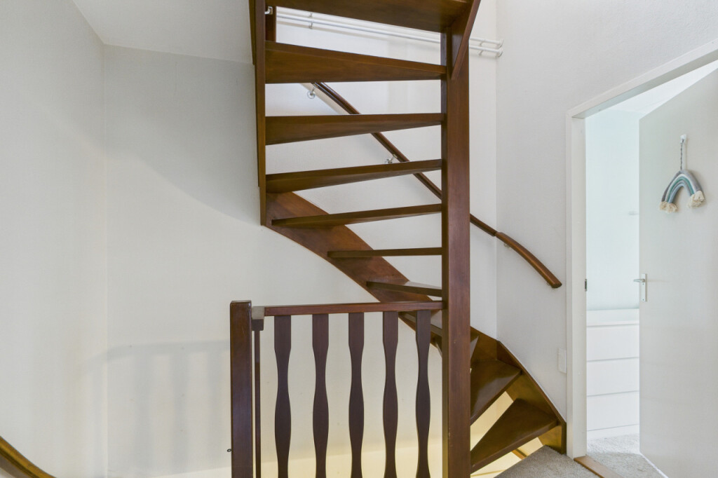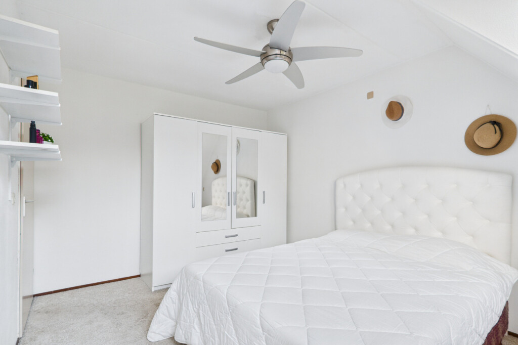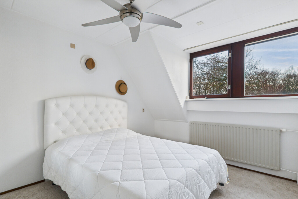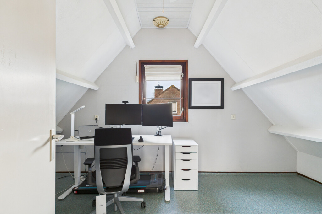 Overloop met berging en toegang tot de ruime 4e slaapkamer. Deze verdieping is ideaal als extra slaapkamer, werkkamer of hobbyruimte en biedt volop mogelijkheden om naar eigen wens in te richten.
