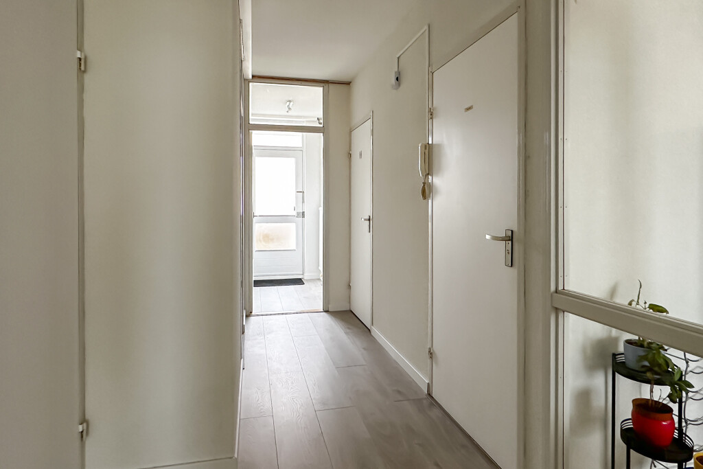 Benedenhal met brievenbussen, lift en trappenhal, etagehal, galerij, voordeur entree, gang met provisie/cv-ruimte, toilet, badkamer met douchecel, wastafelmeubel, handdoekradiator en aansluiting wasmachine. Vanuit de gang heb je toegang tot de 3 slaapkamers en de royale lichte woonkamer met een deur naar het ruime balkon. Aan de voorzijde van het appartement vind je de eetkeuken met een modern keukenblok v.v. inductiekookplaat, afzuigkap, combimagnetron, koelkast en een vaatwasser.
