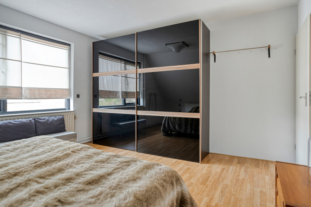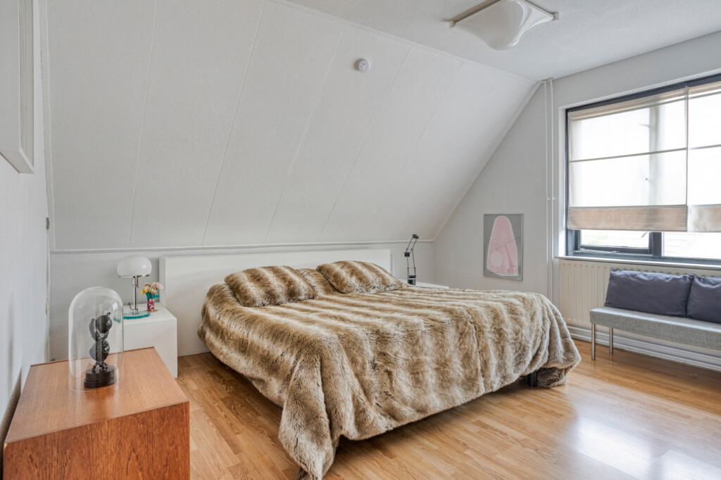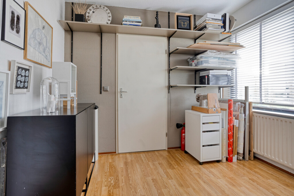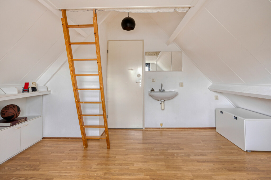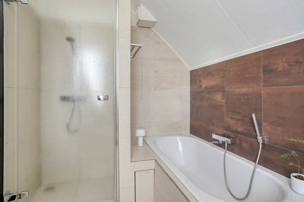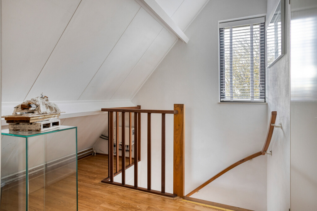De eerste verdieping beschikt over drie volwaardige slaapkamers, elk licht en prettig van formaat. De badkamer is modern ingericht, met een combinatie van lichte en warme tegels, een ligbad én een aparte douche, wasmeubel en toilet. Een fijne, keurige ruimte die direct gebruikt kan worden zonder aanpassingen. De tweede verdieping vormt een verrassend ruime extra leeflaag. Hier bevindt zich een vierde slaapkamer met een hoge nok, een frisse afwerking en een handige extra slaapplek op de vliering. De schuine zijden zijn optimaal benut voor bergruimte, waardoor de kamer zowel praktisch als sfeervol is.