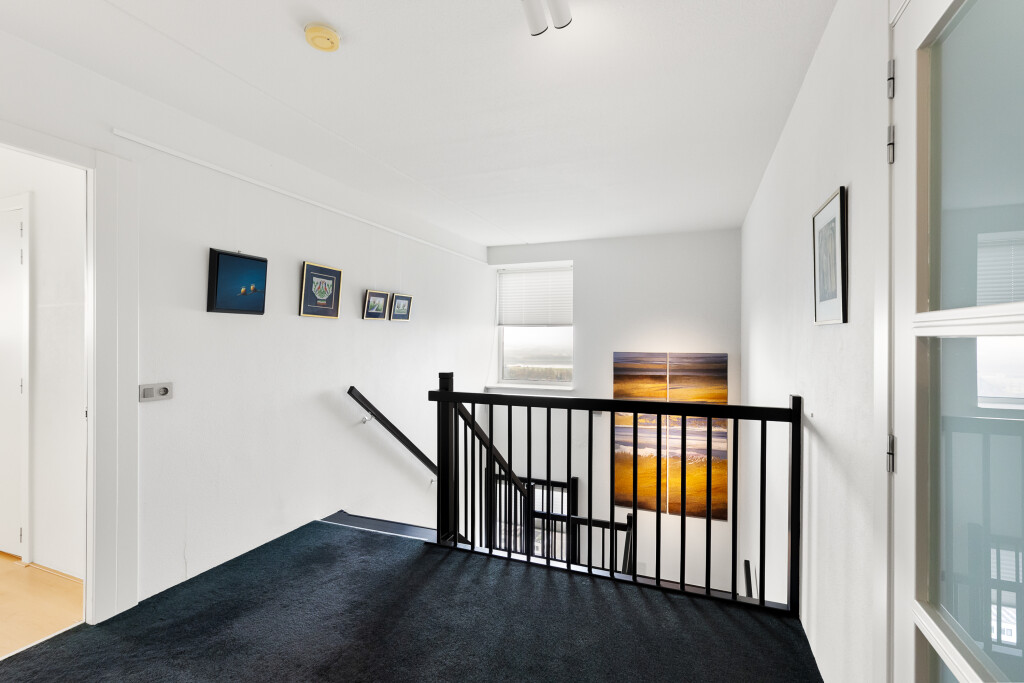 De slaapsuite aan de zuidzijde gelegen is voorzien van een schuifwand en raampartij met schuifsysteem en parketvloer. Doormiddel van deze flexibele wand heeft u de mogelijkheid tot het creëren van een zelfstandig kantoor-hobbyruimte of extra slaapkamer en voorzien van parketvloeren.