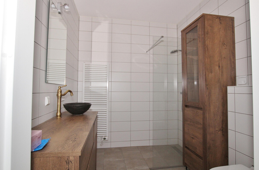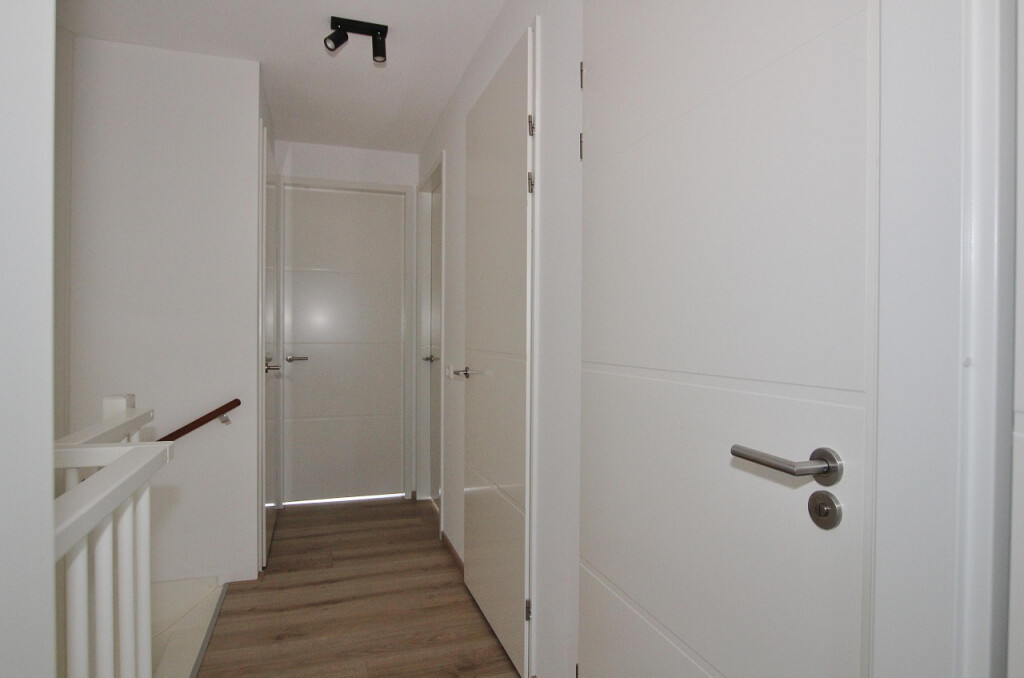 Op de verdieping bevinden zich: 3 slaapkamers, een moderne badkamer met douche, wastafel en toilet (voorzien van vloerverwarming)