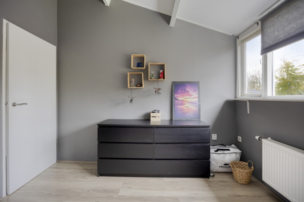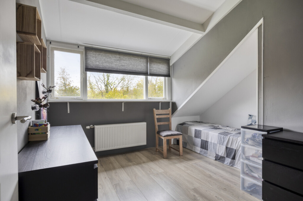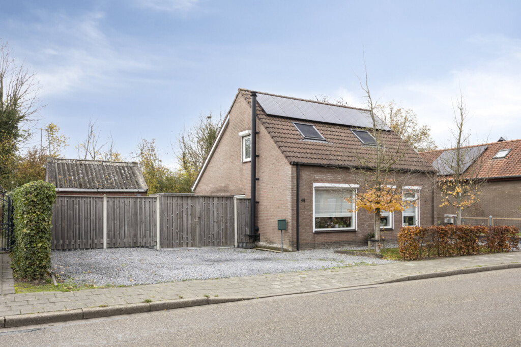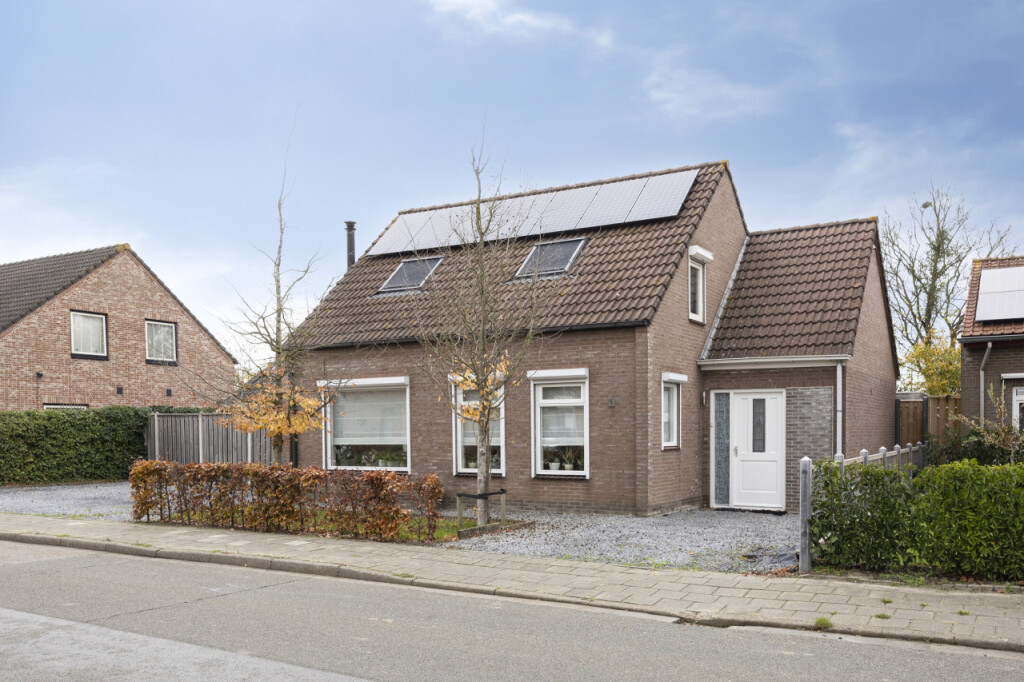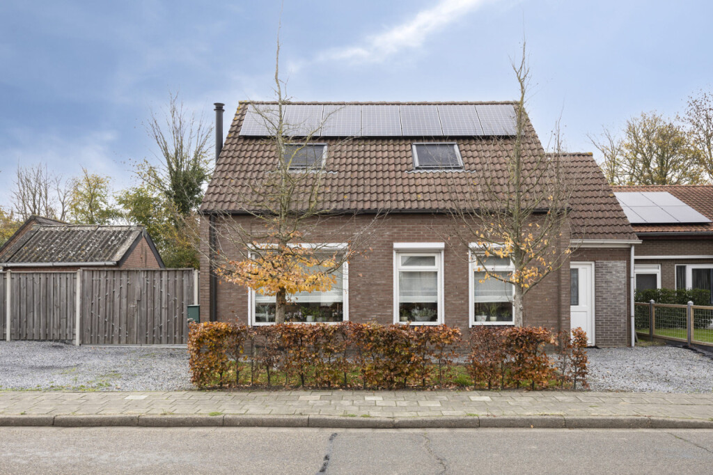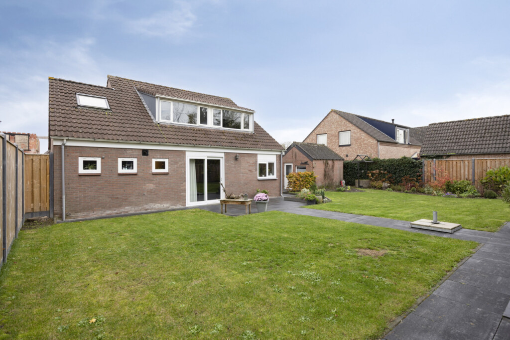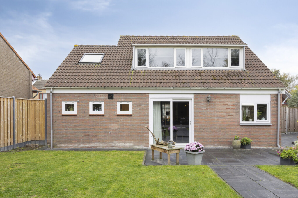 De tuin is een heerlijke plek om te ontspannen. Vanuit de keuken stap je via de zijdeur of de schuifpui zo naar buiten, waar de recent geplaatste houten overkapping direct in het oog springt. Deze kan volledig worden afgesloten, zodat je ook tijdens regenachtige dagen comfortabel buiten zit. Aan de rechterzijde van de overkapping bevindt zich een praktische berging, en aan de zijkant van de tuin staat een vrijstaande stenen berging die perfect is voor fietsen of tuingereedschap. Dankzij de waterput kun je de tuin bovendien eenvoudig en zuinig bewateren. Ook op het gebied van duurzaamheid zit je hier goed: de woning is voorzien van 7 zonnepanelen, wat zorgt voor lagere energiekosten en extra wooncomfort.