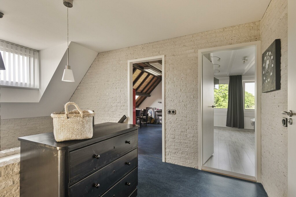 Via de vaste trap in de hal betreed je de overloop. Door de dakkapel aan de voorzijde valt hier voldoende daglicht binnen en oogt het lekker ruim. Vanuit hier heb je toegang tot de vier slaapkamers en de badkamer. In een van de slaapkamers aan de voorzijde zit het luik vanwaar je toegang hebt tot de bergruimte op de zolder. Hier hangt ook de omvormer van de 16 gehuurde zonnepanelen. Drie slaapkamers zijn voorzien van ingebouwde kasten. De badkamer is voorzien van een dakkapel en uitgerust met een inloopdouche, een ligbad, een smaakvol wastafelplateau met twee wasschalen en een tweede toilet.