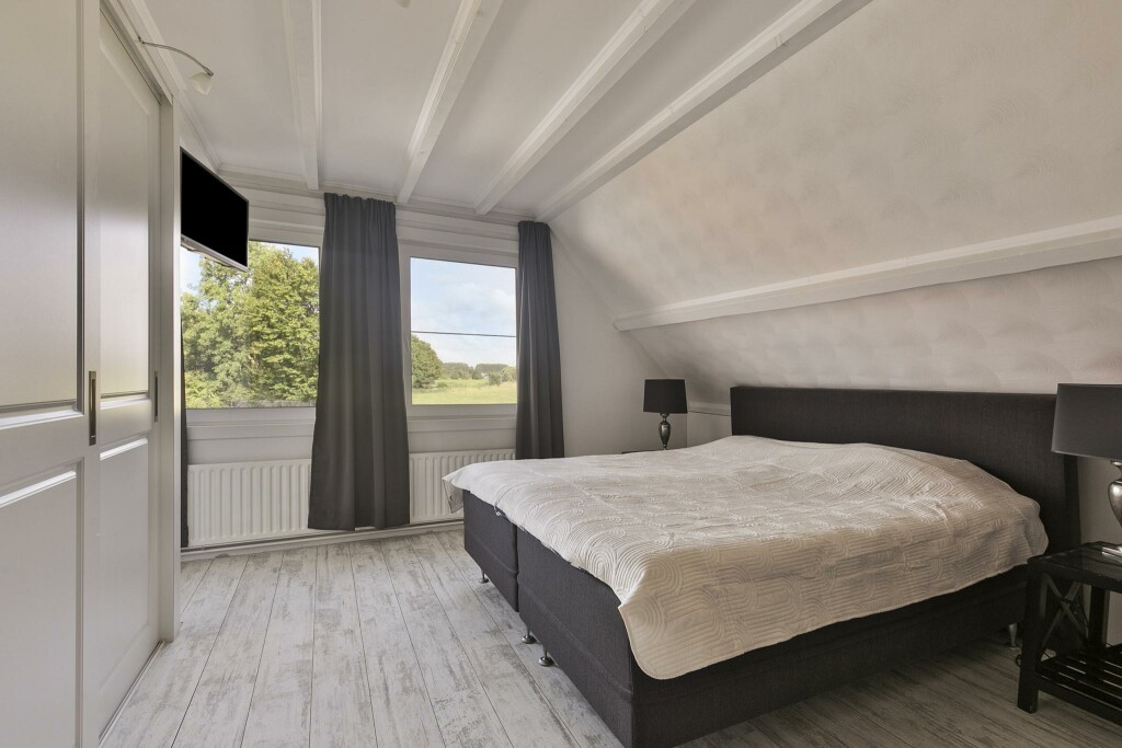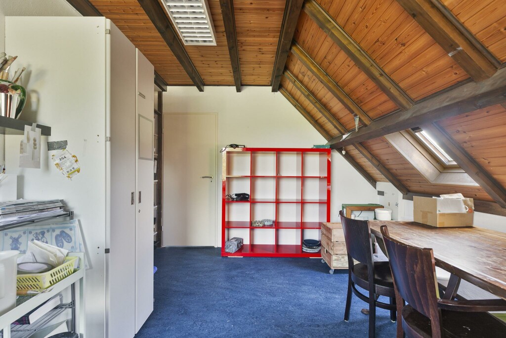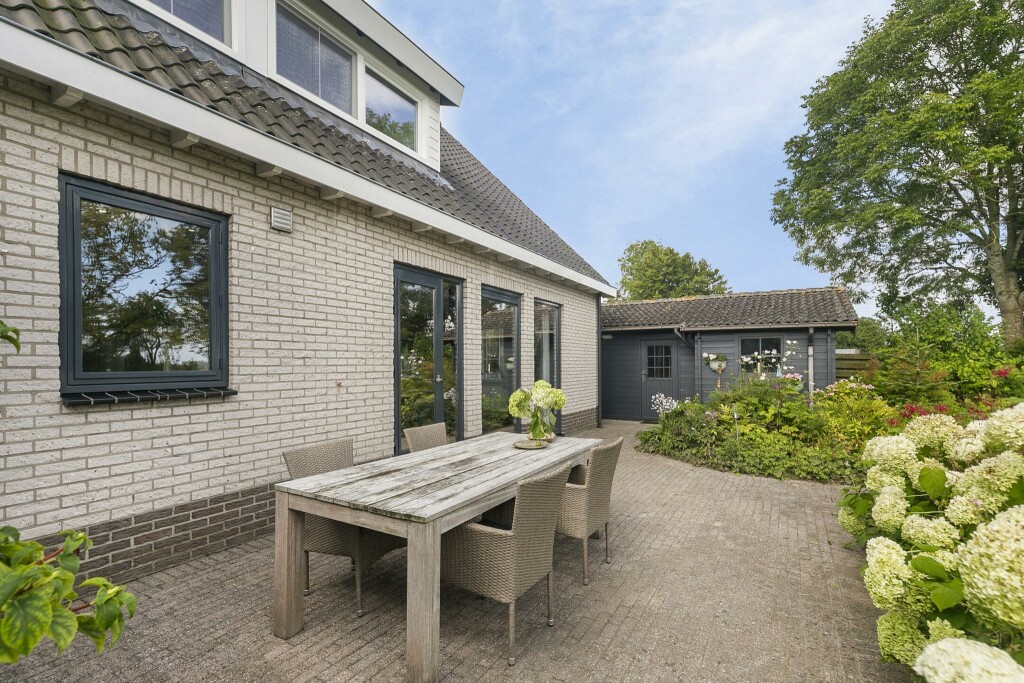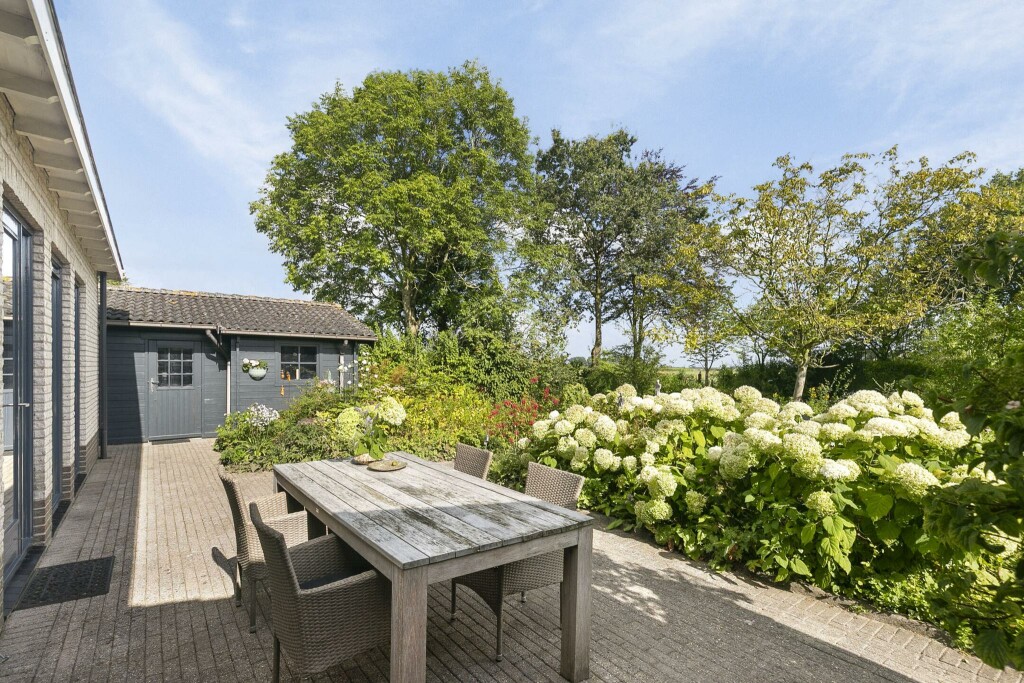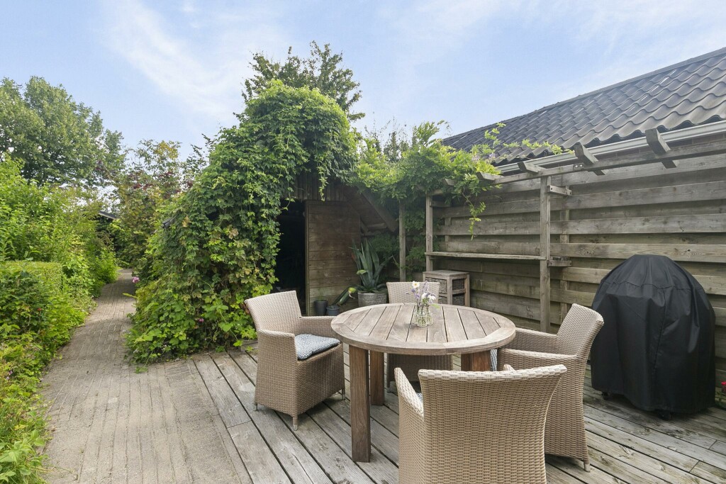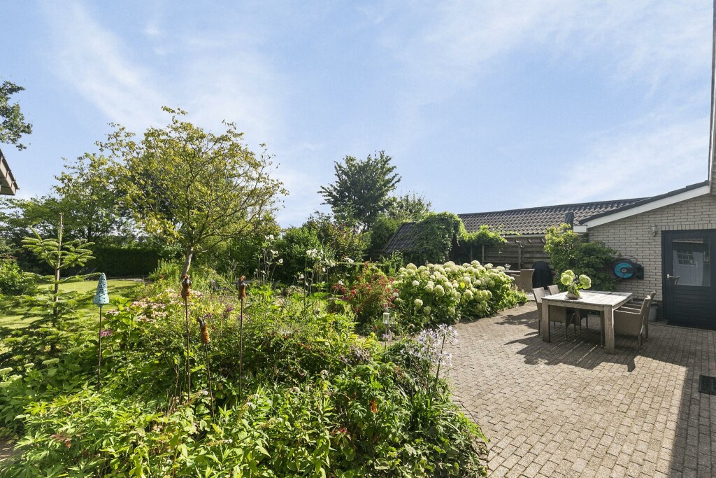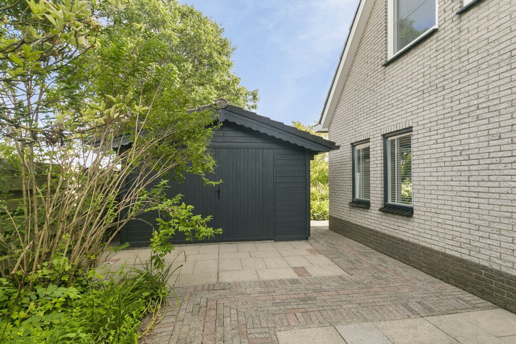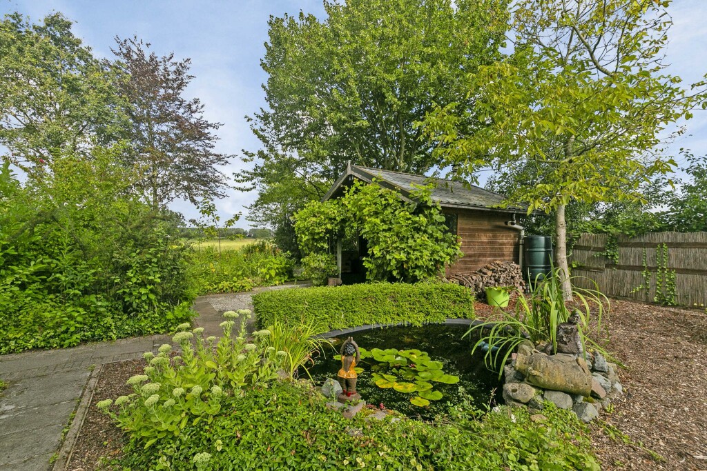 De verlengde garage met elektrisch bedienbare deur beschikt over een zolder die via een vaste trap bereikbaar is. Hier hangt ook de Nefit cv-ketel uit 2015. In de tuin staat achter de tweede oprit een ruime houten schuur met pannendak. Deze kan eventueel als tweede garage gebruikt worden en is voorzien van elektra. Naast een overdekte houtopslag vind je achter in de prachtige tuin nog een fraaie lounge overkapping met daarin een houtkachel. Hier kom je helemaal tot rust in je eigen paradijsje. De tuin loopt in een L-vorm weg achter de percelen van de buren, helemaal tot aan de Meidoornstraat. De combinatie van een fraai aangelegde tuin met natuurlijk karakter, het uitzicht op de achtergelegen polder en de fraaie boomgaard maken het een geweldige plek met alle privacy die je je kan wensen.