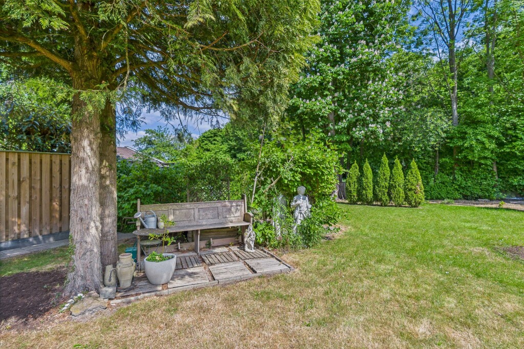 Tuin: De fraai aangelegde tuin grenst aan een groenvoorziening, wat zorgt voor een rustige en natuurlijke achtergrond. De tuin biedt een combinatie van een royaal terras, gazon, een karakteristieke kastanjeboom en diverse fruitstruiken. Gedurende de dag is er altijd wel een plekje te vinden om van de zon te genieten, terwijl je in alle rust omringd bent door groen.